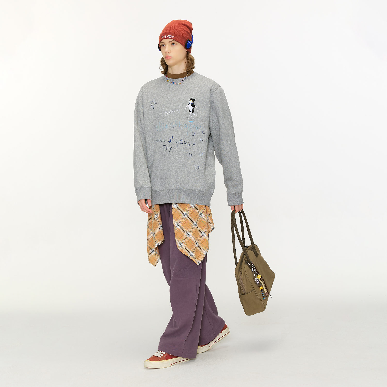 抓绒宽松圆领套头卫衣122 25秋冬新款 5535 小麋鹿图案男装 AF经典