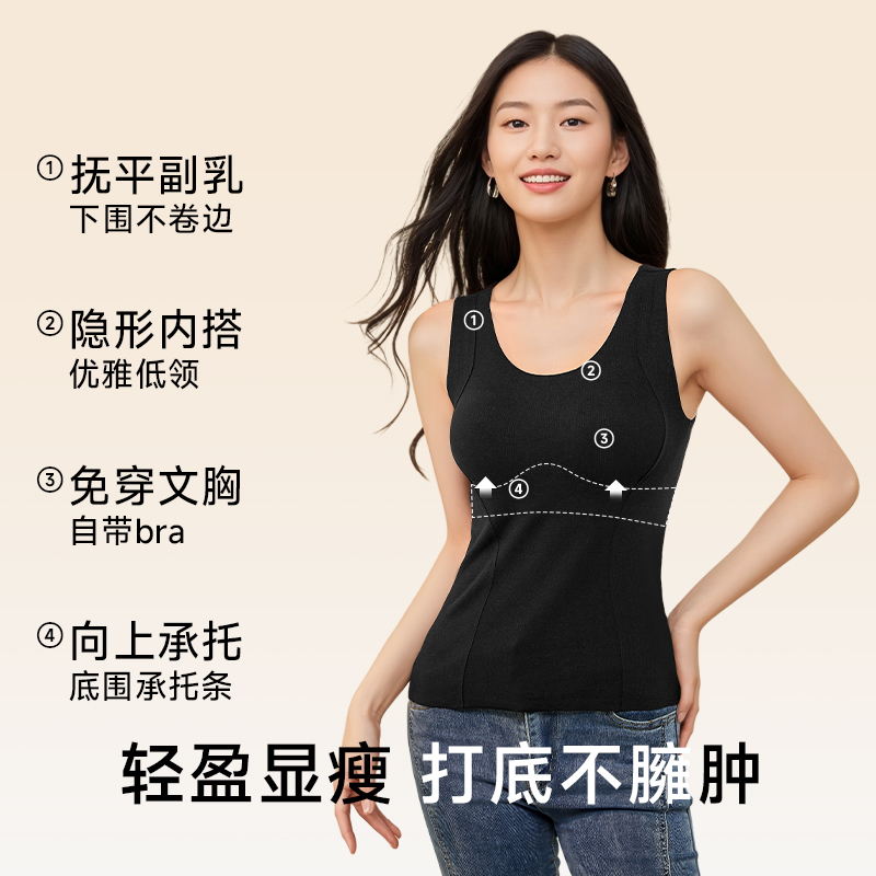 草本初色保暖背心女带胸垫秋衣2025新款 内搭肌底衣 秋冬吊带打底衫