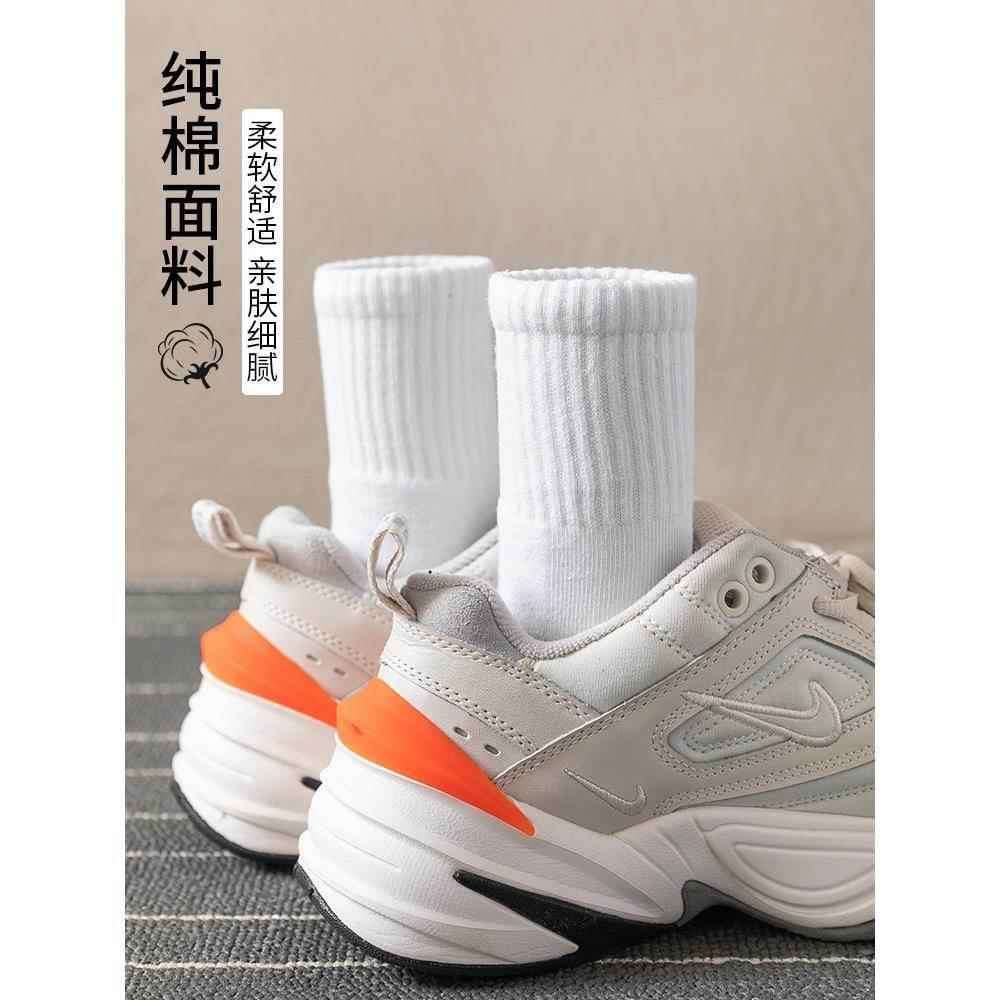 配鲨鱼裤 中筒白色长筒纯棉纱秋冬长 袜子女冬秋外穿潮网红款