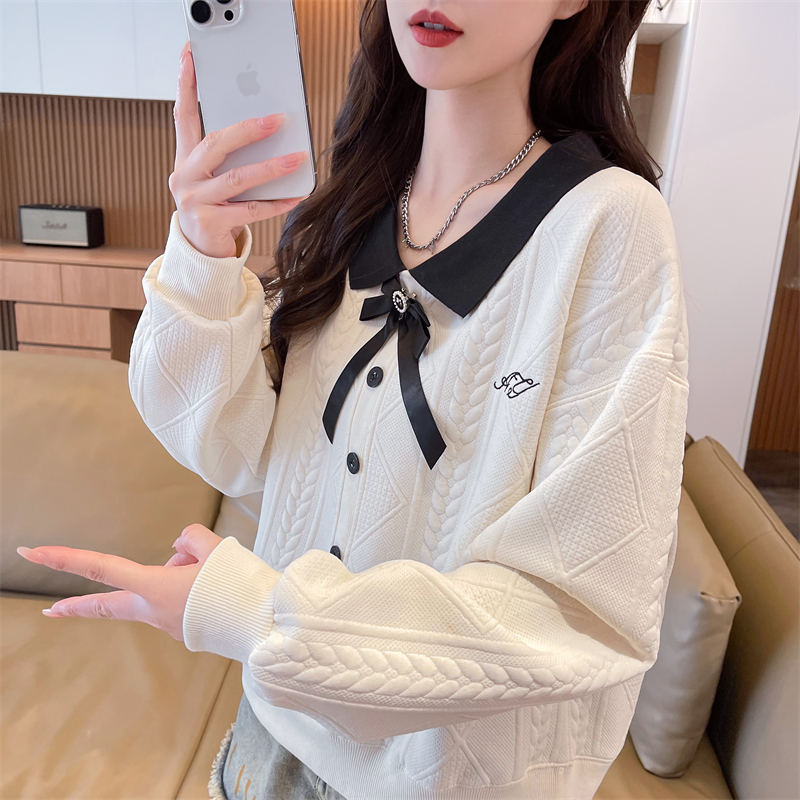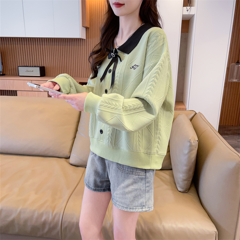 宽松薄款 春秋季 小个子假两件上衣 蝴蝶结卫衣女2025新款 翻领polo衫