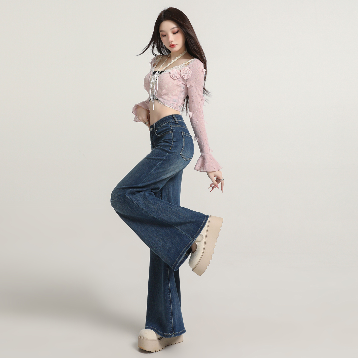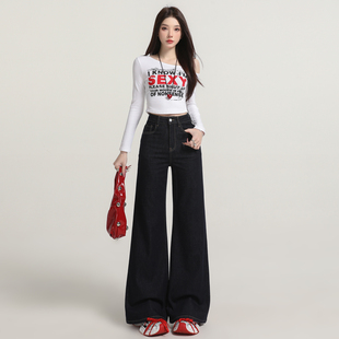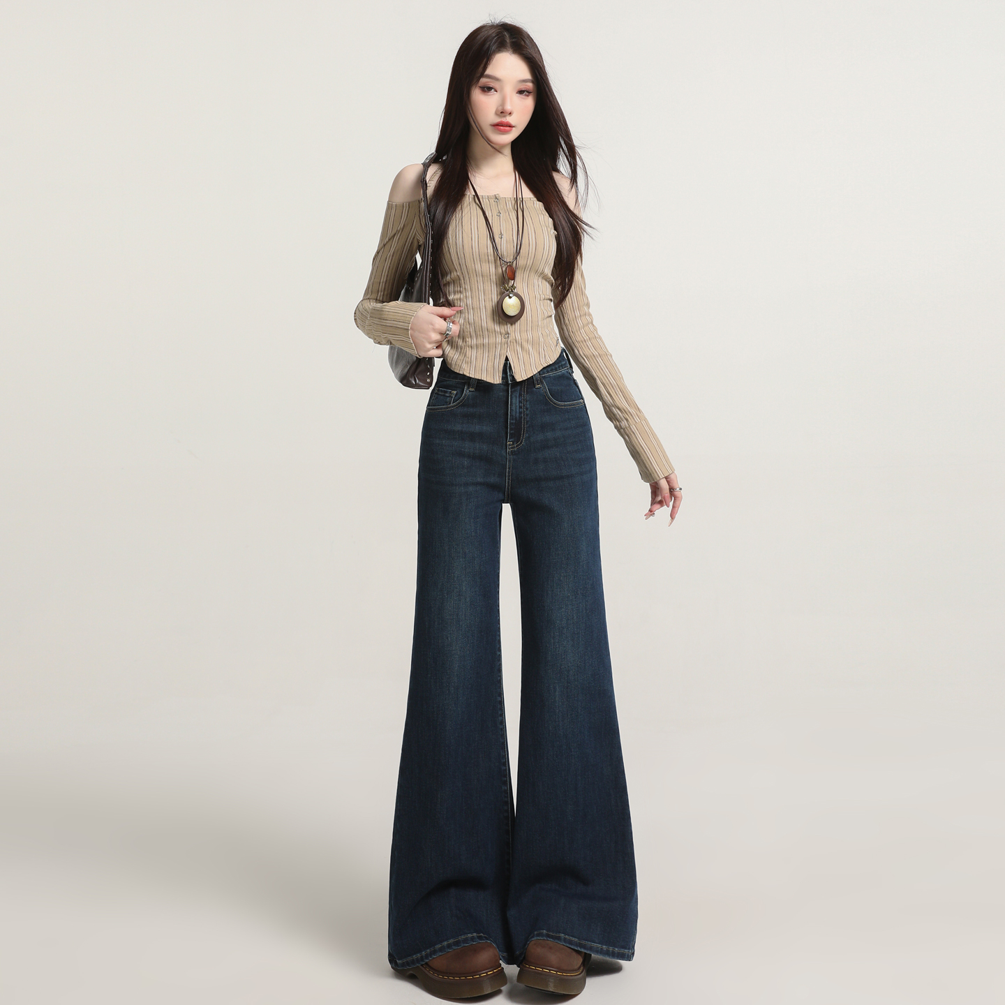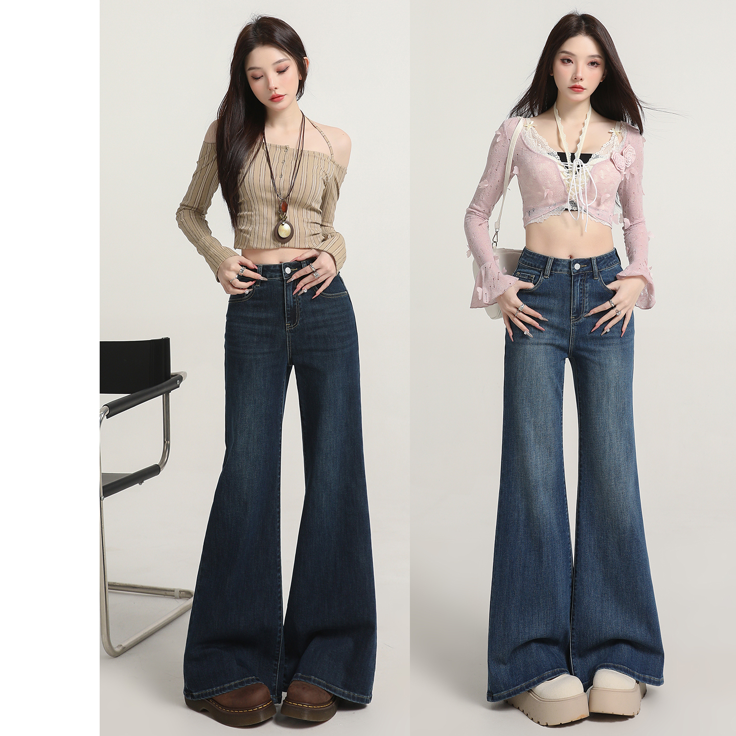 深蓝高腰显瘦微喇垂坠感梨型身材马蹄牛仔裤 爆款 女2025新款 喇叭裤