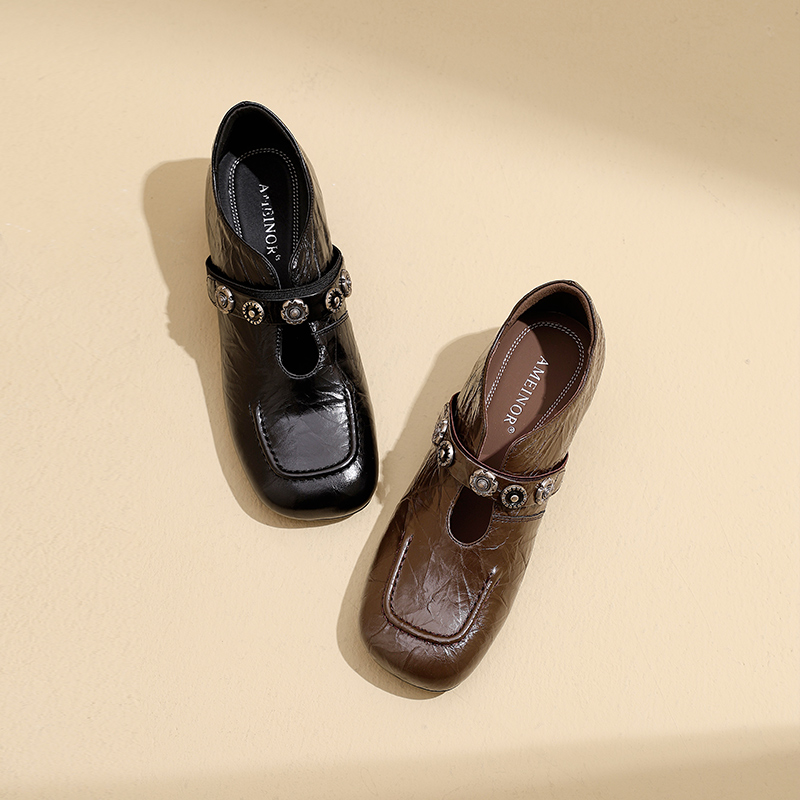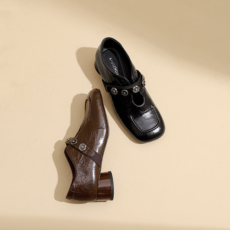 低跟深口单鞋 2025新款 不累脚真皮女鞋 复古风圆头一脚蹬乐福鞋 法式