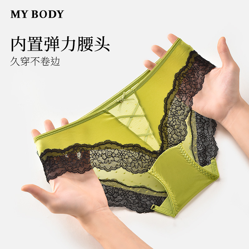 性感蕾丝细带交叉包臀三角裤 3件159 法式 MYBODY女士内裤 商场同款