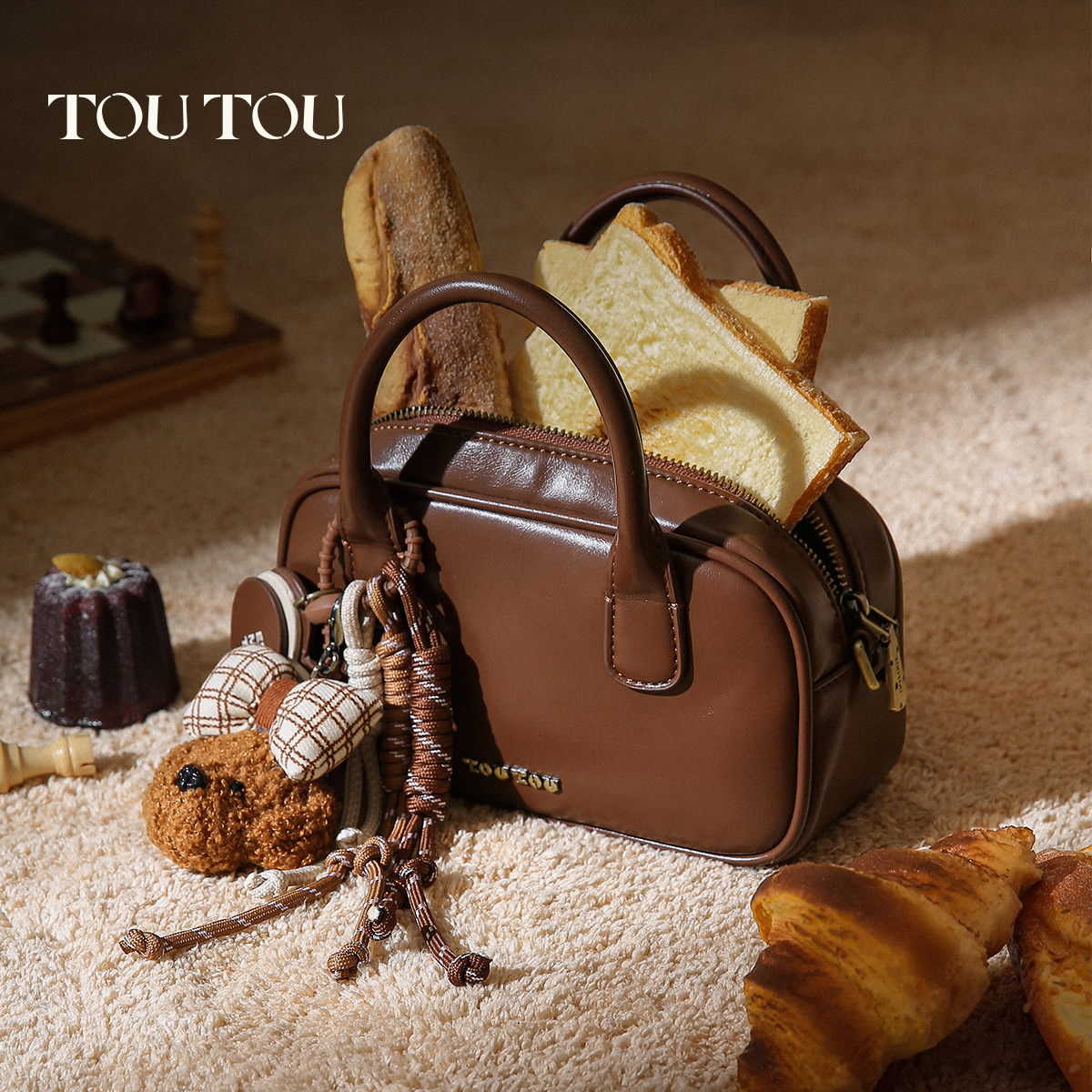 TOUTOU透透2025新款 小狗波士顿保龄球包棕色大容量通勤单肩斜挎包