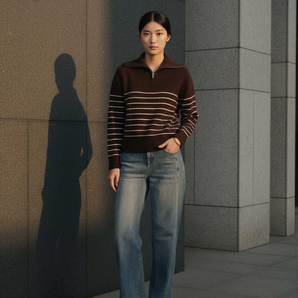 新品 洗水休闲显瘦2025秋季 女弯刀裤 OCHIRLY欧时力100%棉牛仔长裤