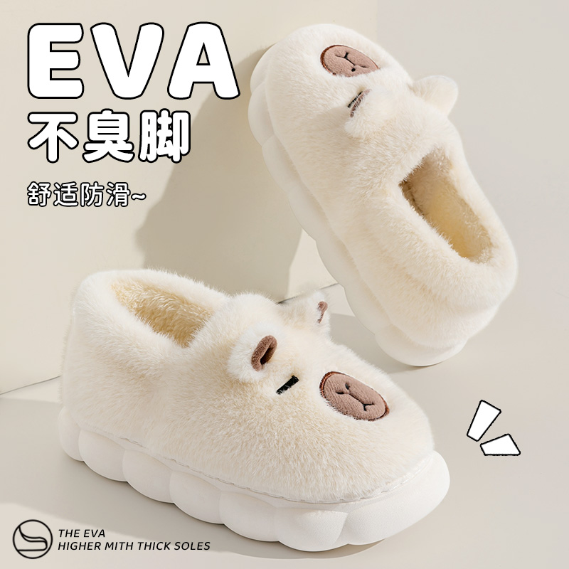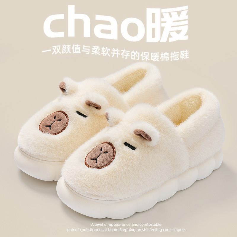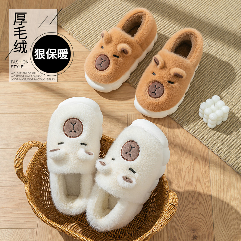软底踩屎感家居拖鞋 冬季 保暖防滑静音棉拖 2025新款 卡皮巴拉棉拖鞋