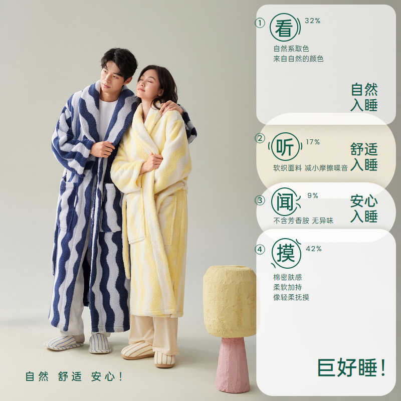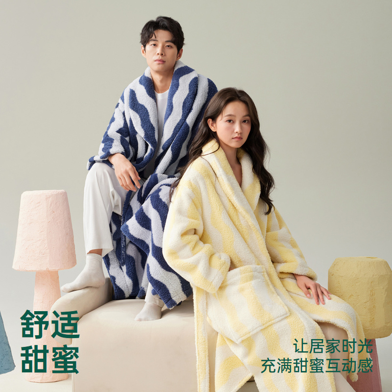 冬款 安之伴 珊瑚绒加厚浴袍男士 情侣睡袍女秋冬季 家居服 巨保暖
