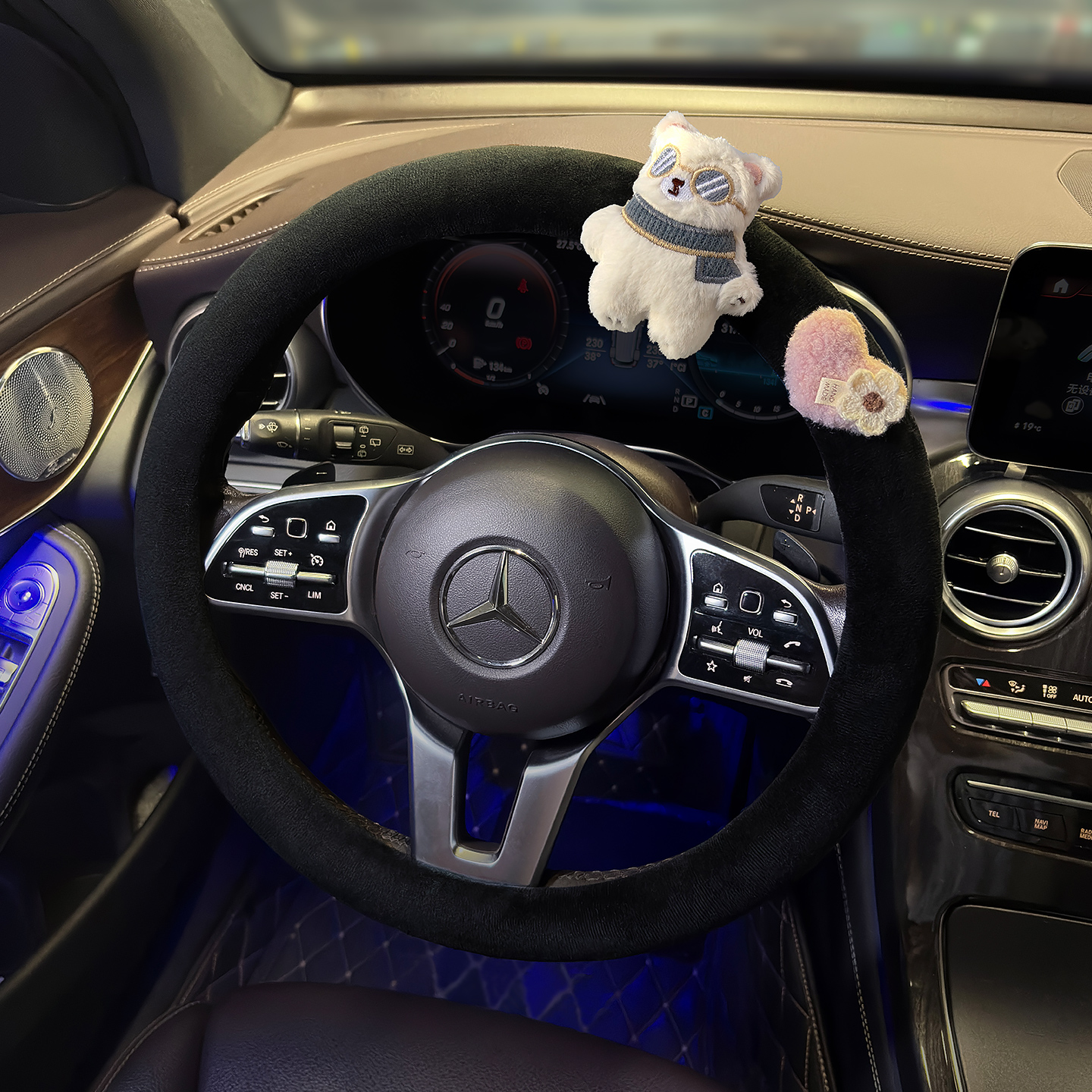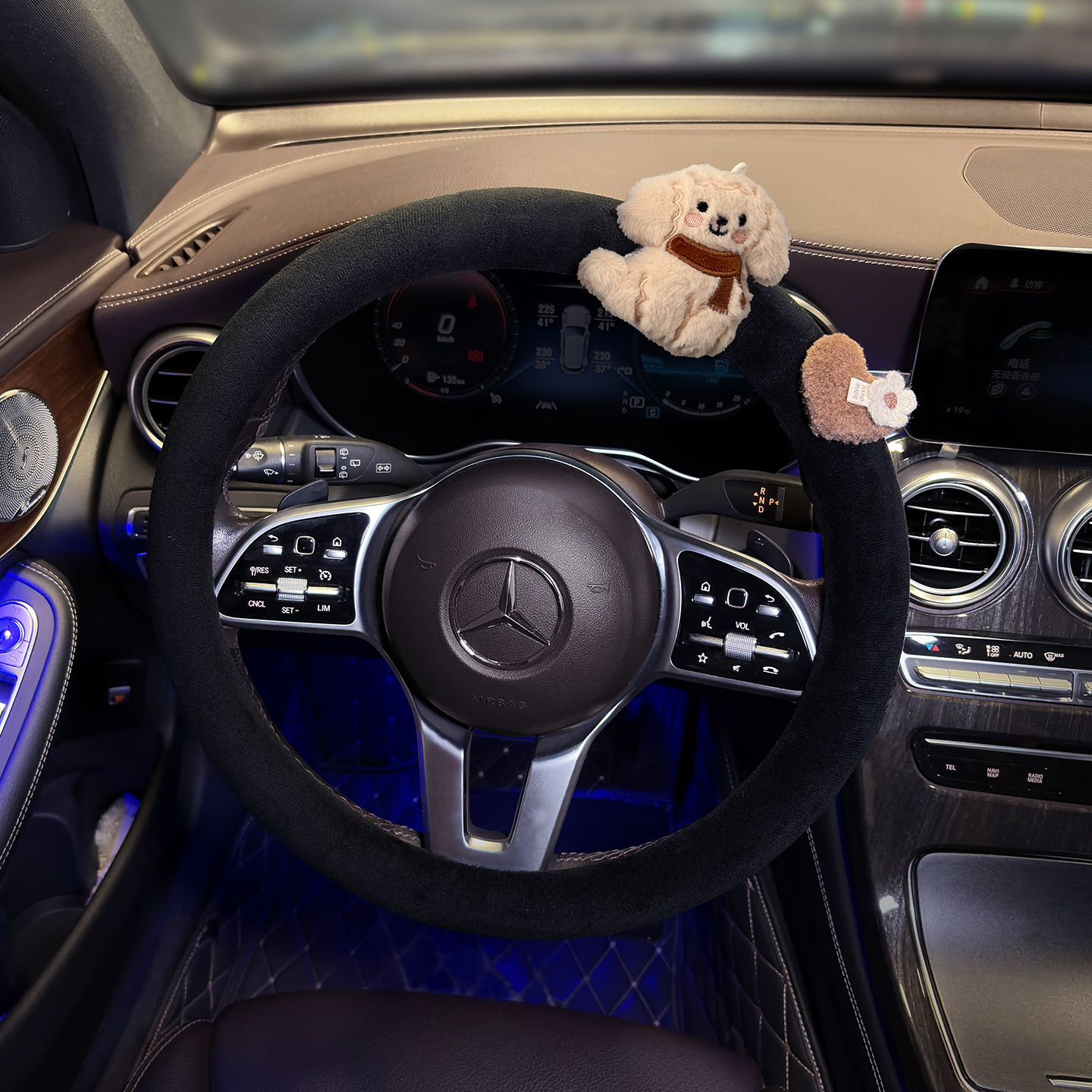 汽车方向盘套冬季 方向盘把套女 毛绒防滑可爱卡通围巾小熊2025新款