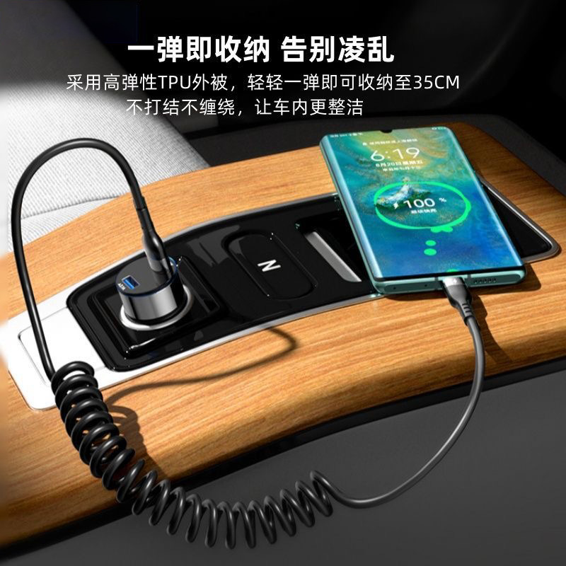 120W超级快充弹簧双Type C数据线车载伸缩6A超级快充适用于15华为p70荣耀VIVO小米OPPO充电线摩托车线