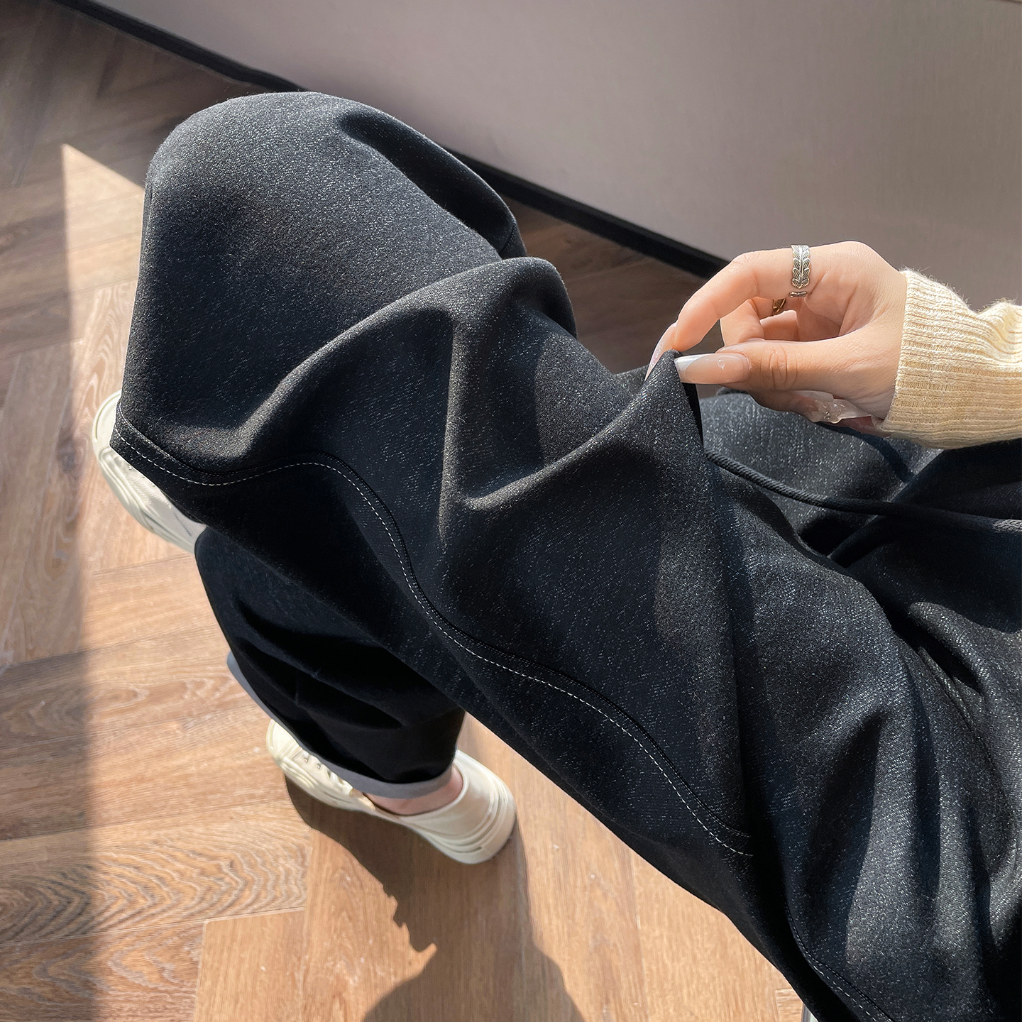 2025秋季 新款 运动拖地裤 垂感显瘦休闲裤 弯口袋糯米阔腿裤