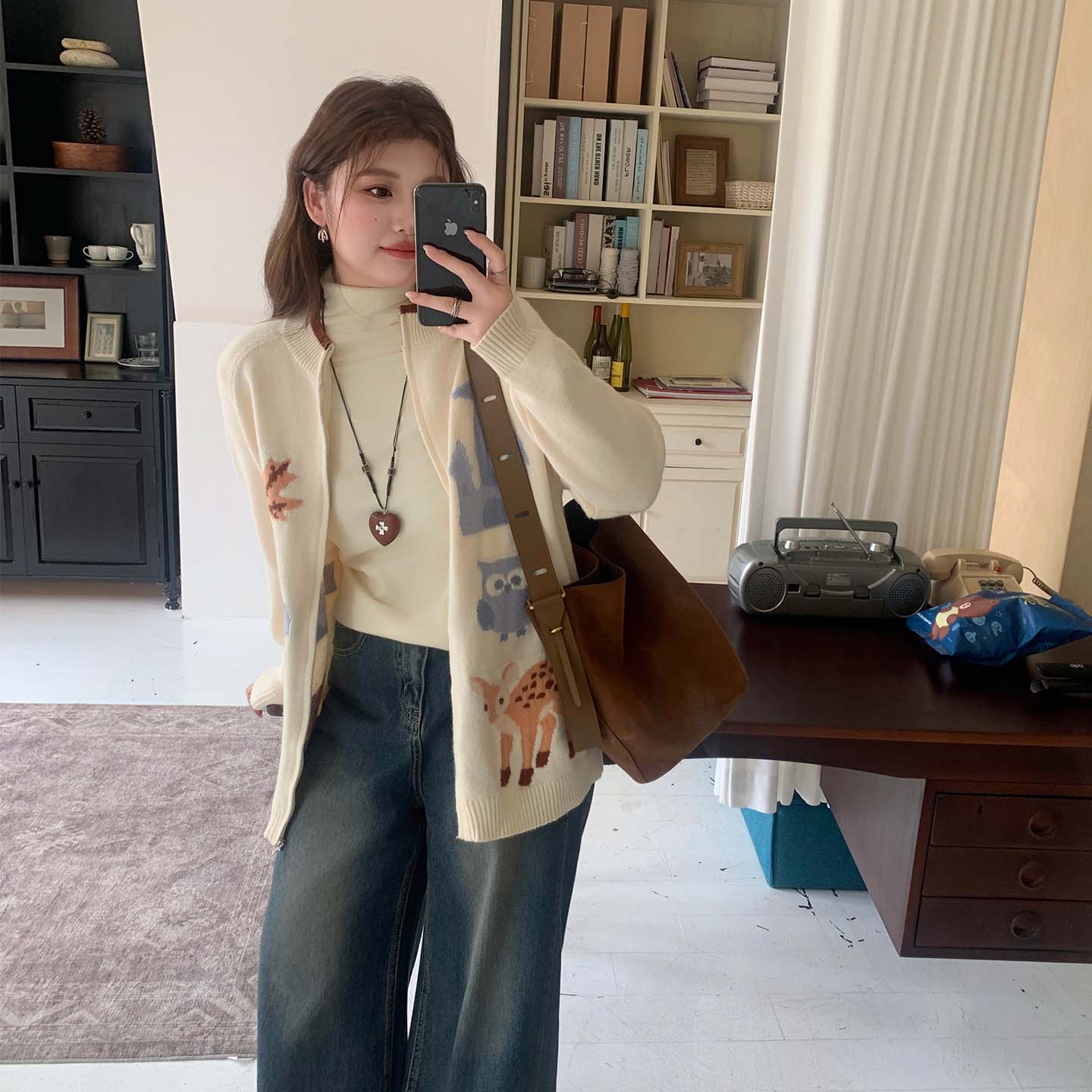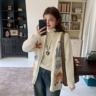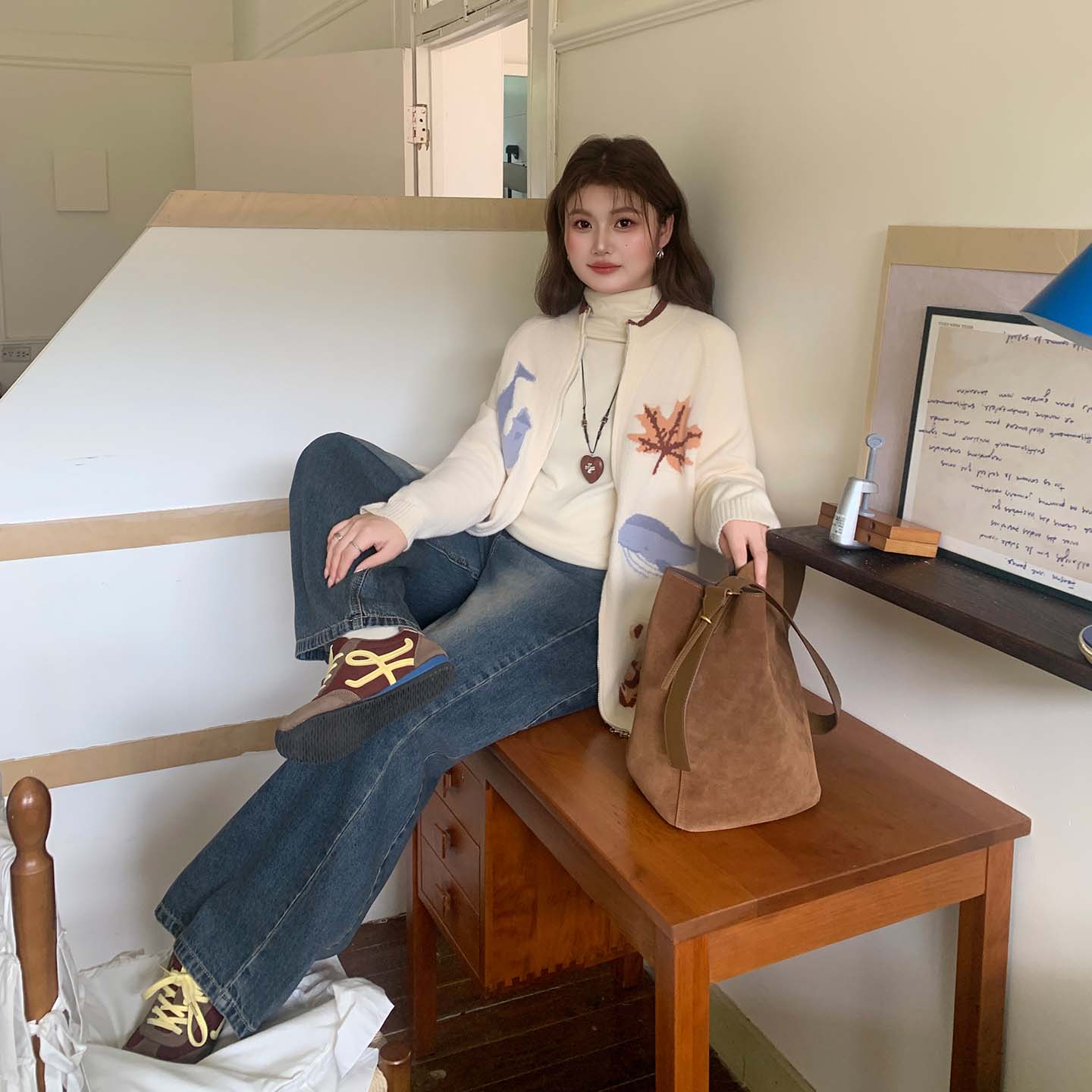 女装 毛衣外套特大码 胖mm秋冬慵懒风 鱼子少女感提花针织开衫 YIZI