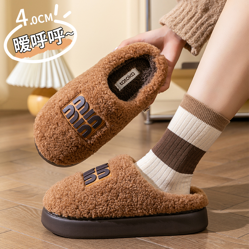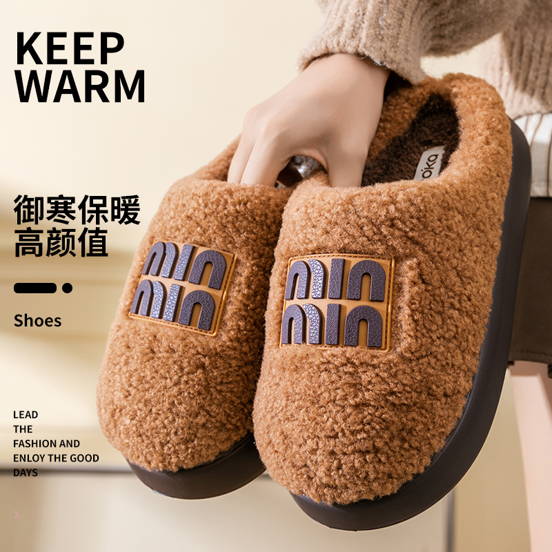 家居室内加厚保暖拖鞋 2025新款 防滑厚底外穿棉拖 女冬季 加绒棉拖鞋