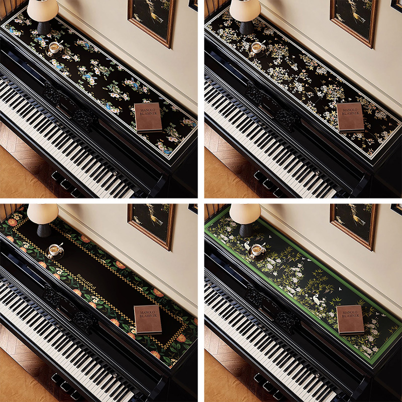 黑色皮革垫顶盖钢琴防尘罩高级感遮盖保护垫美式 轻奢盖巾高档布盖