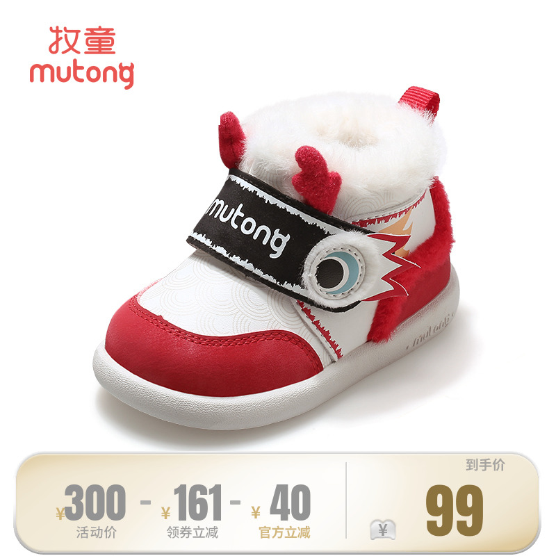 子小高帮保暖软底加绒棉鞋 牧童福龙学步鞋 男宝宝鞋 国风婴儿鞋 冬季