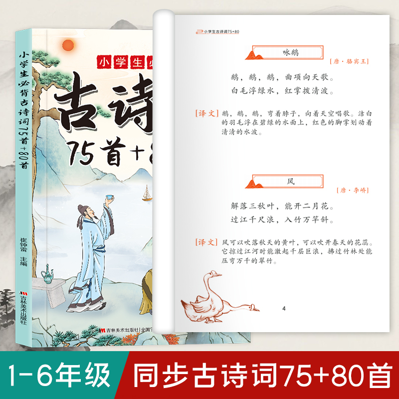 抖音同款 正版 小学生必背古诗词75 全文译文注释涵盖小学语文教材课外拓展 书籍 80首