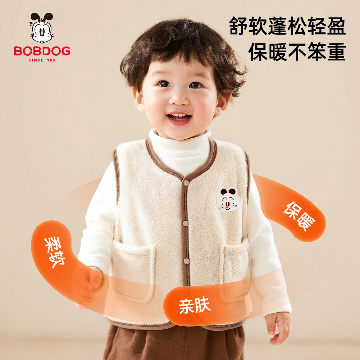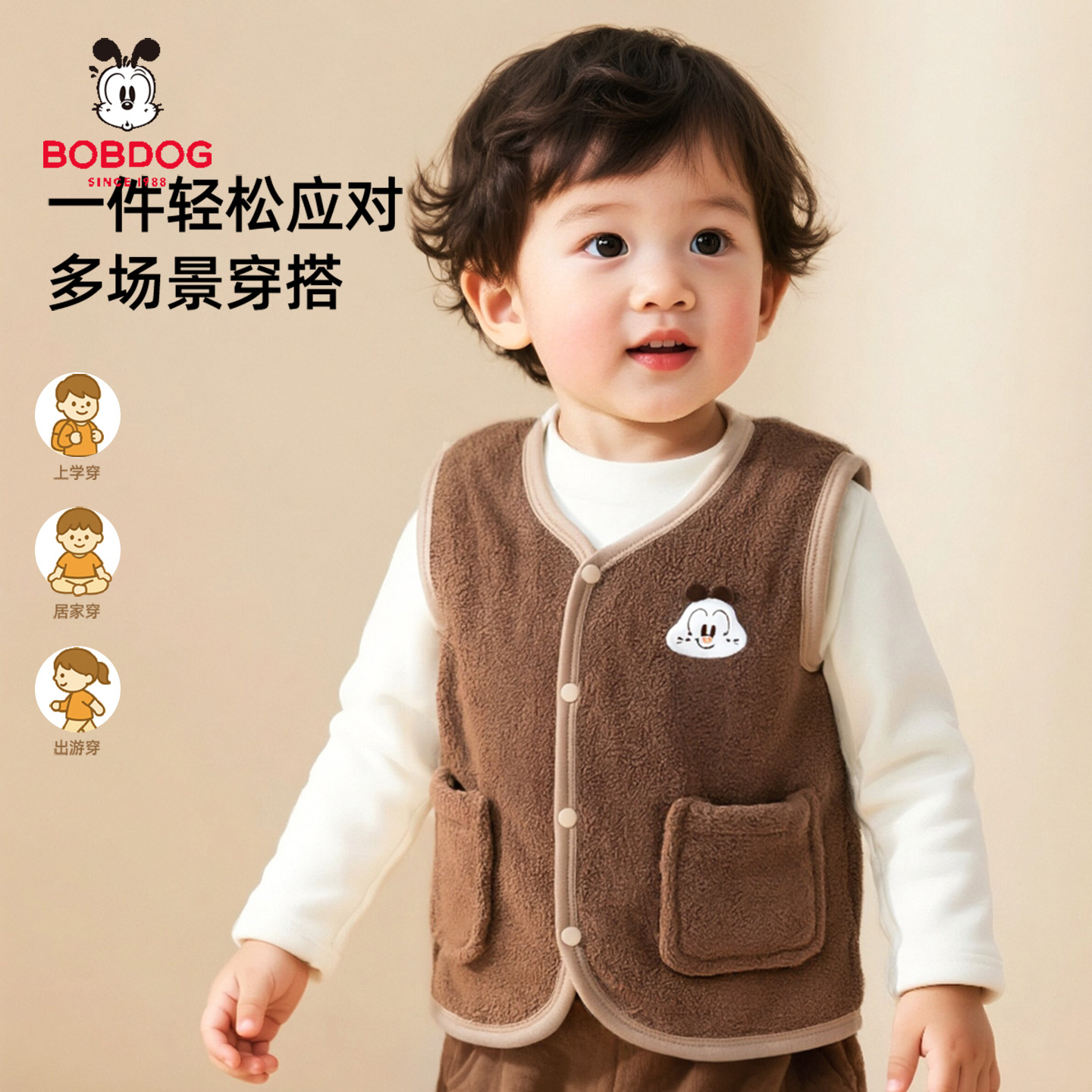 班尼路重磅摇粒绒马甲男2025秋冬新款 男青少年宽松加绒坎肩外套A