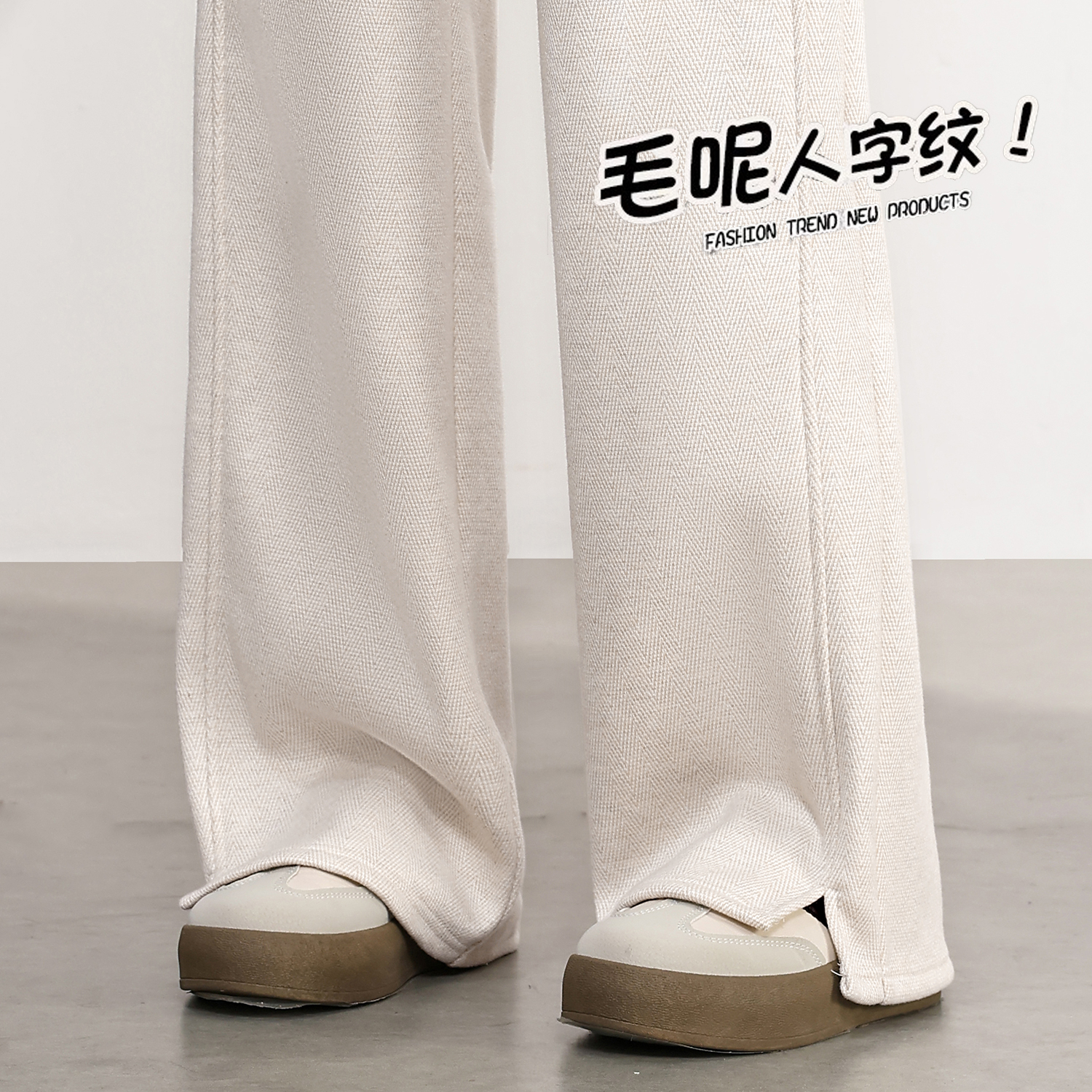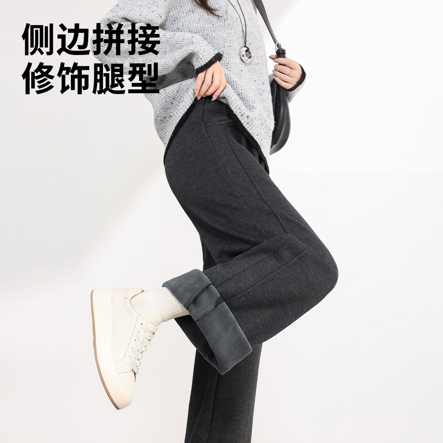 加绒阔腿裤 新款 子女2025冬季 班尼路S&K系列黑色人字纹毛呢休闲裤