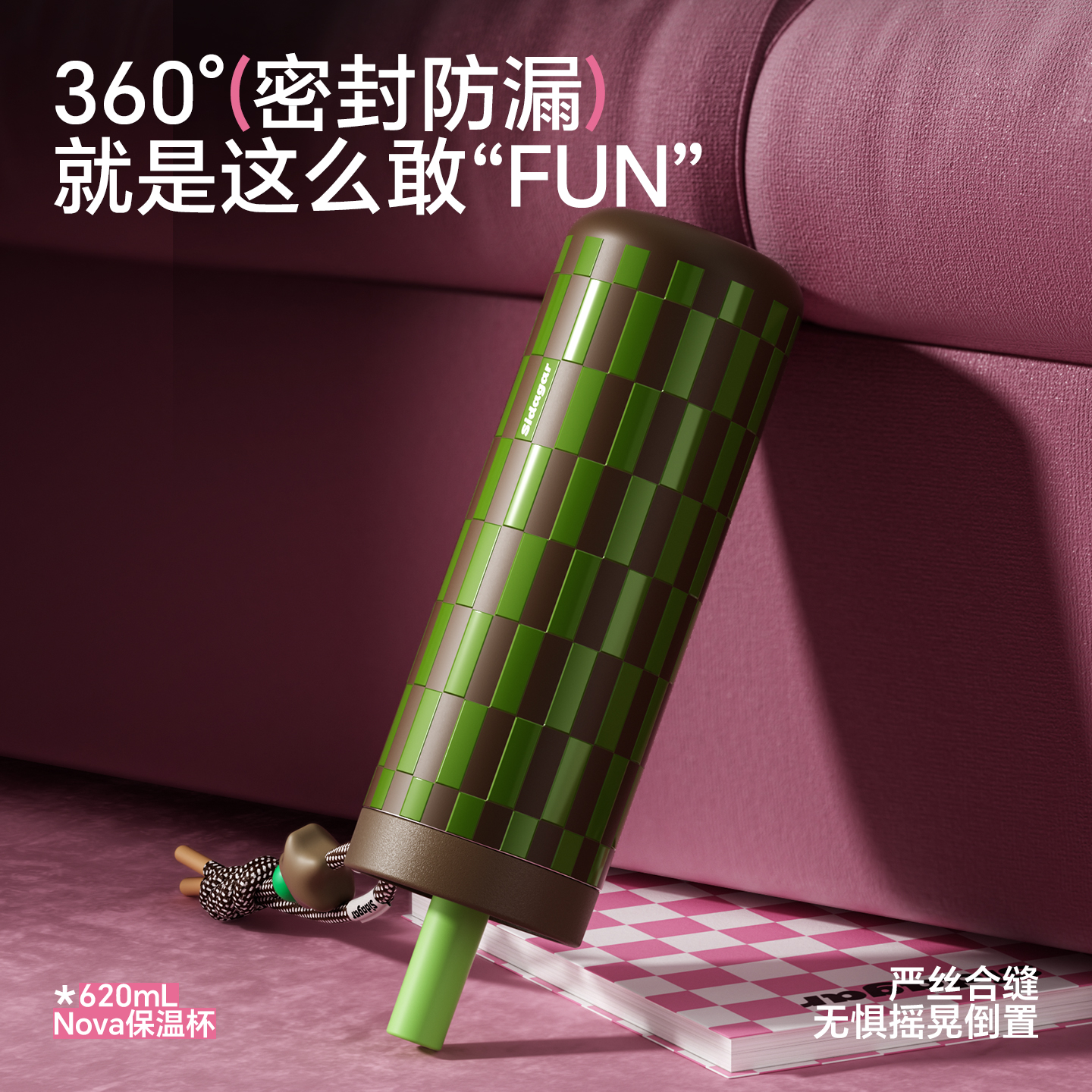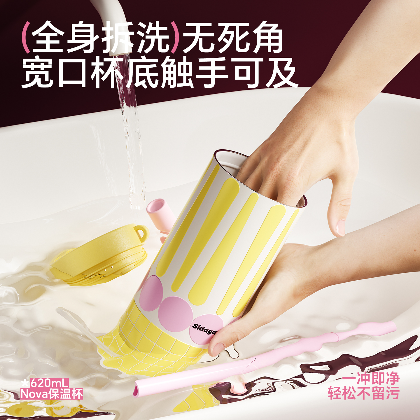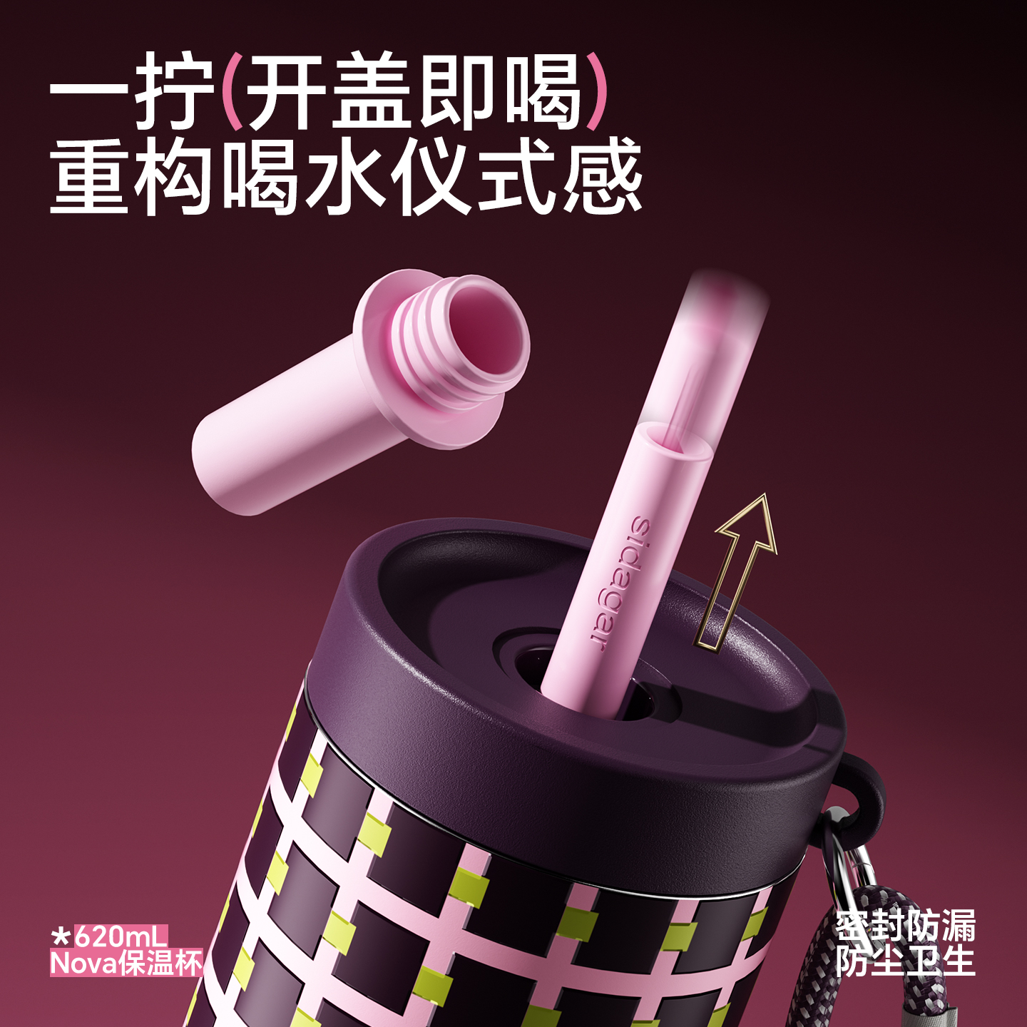 世大家保温杯女士高颜值2025新款 学生吸管水杯陶瓷内胆车载杯子
