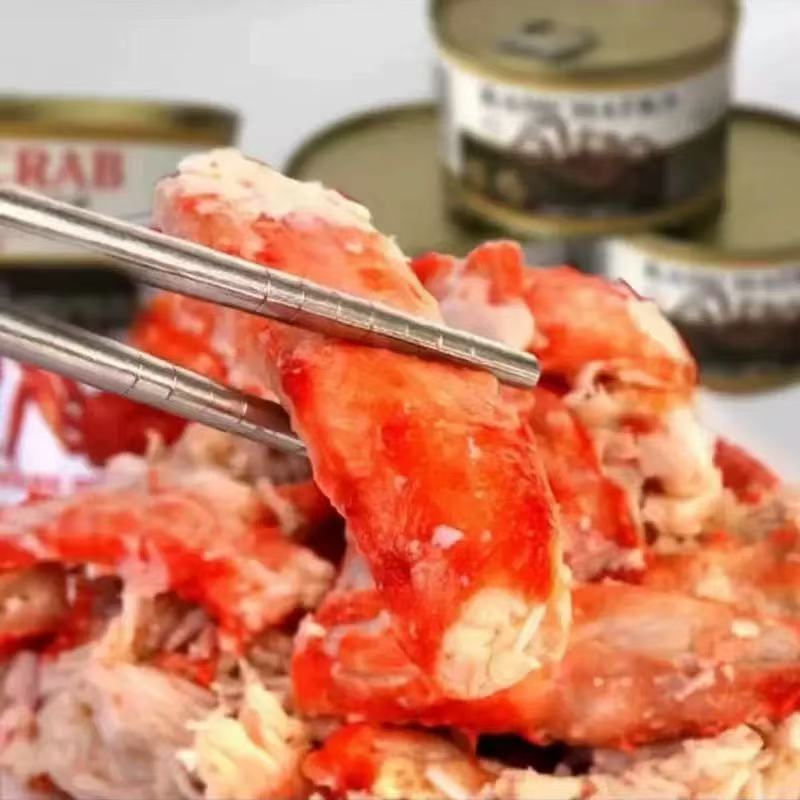俄罗斯进口帝王蟹罐头整条雪蟹腿肉帝皇蟹钳肉开盖即食海鲜240克