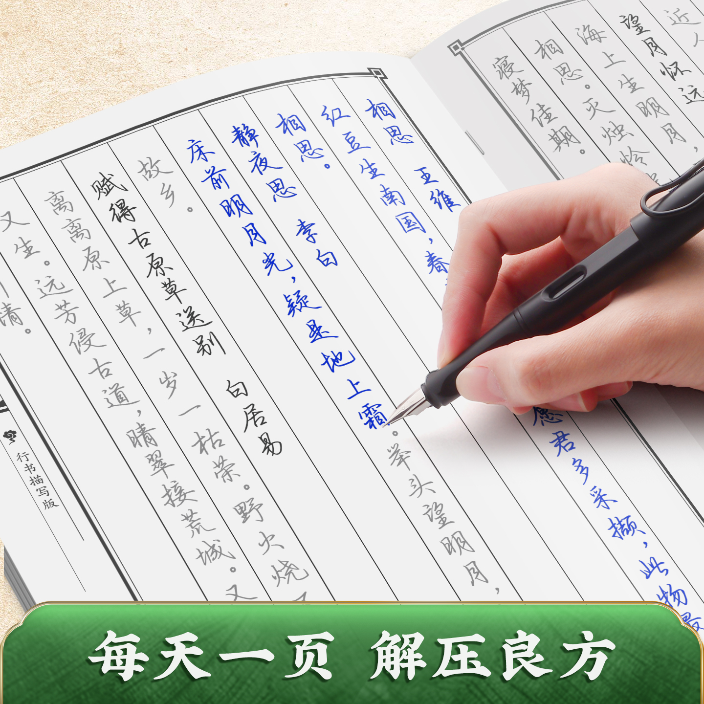 华夏万卷初练行书字帖成人练字国学经典 唐诗宋词道德经硬笔行书练字帖中学高中大学生速成初学者描红本行楷钢笔书法纸