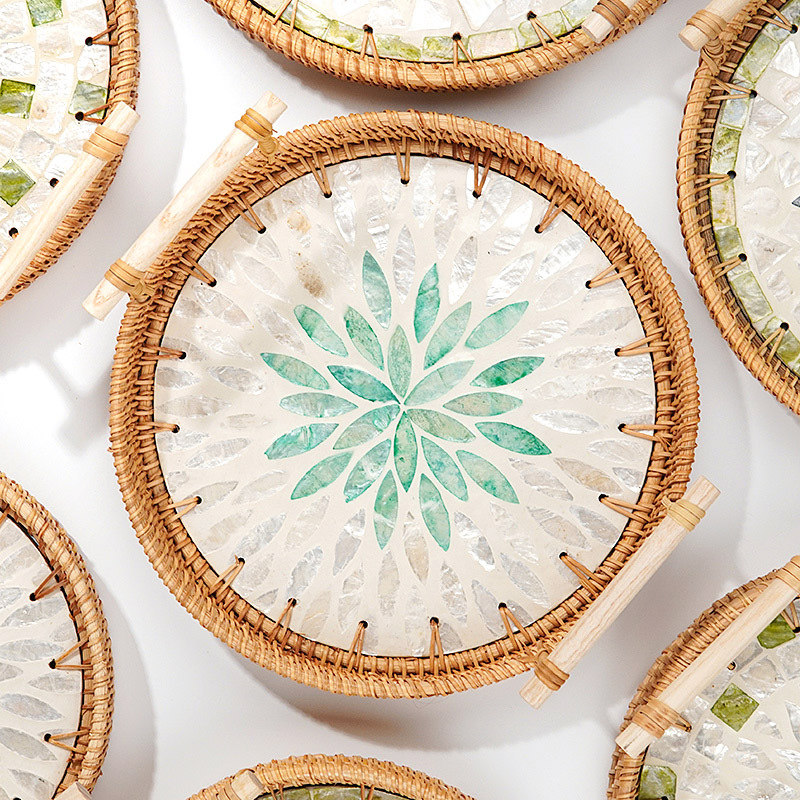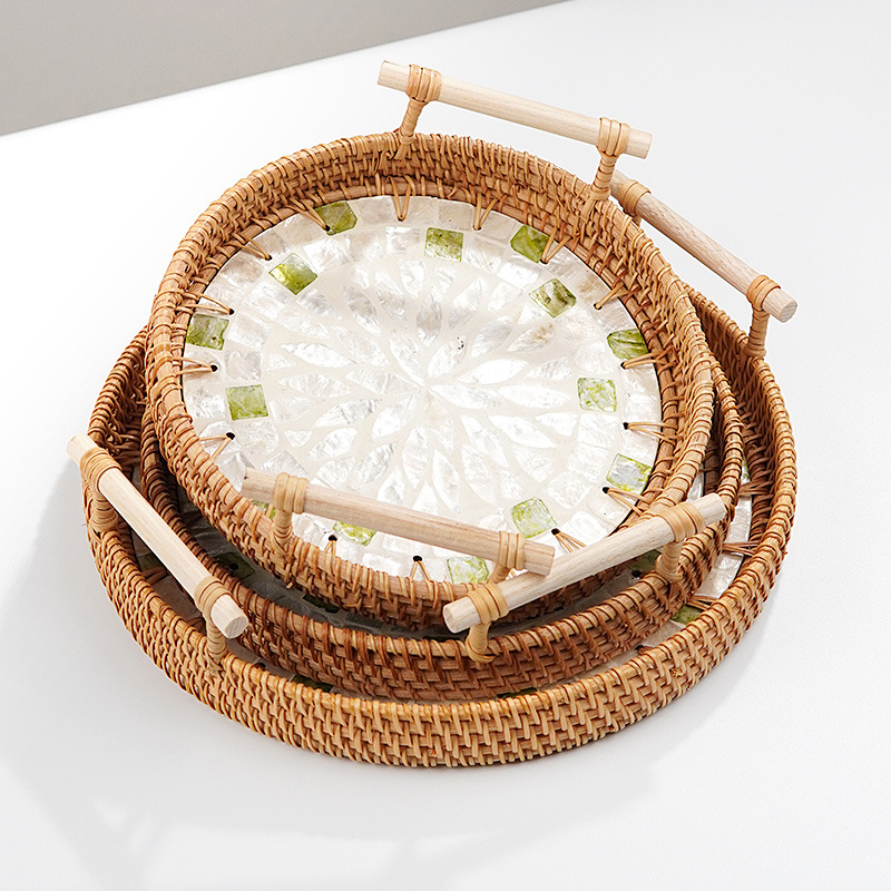 藤编贝壳托盘天然海贝拼接创意双耳托盘零食果蔬下午茶点心篮