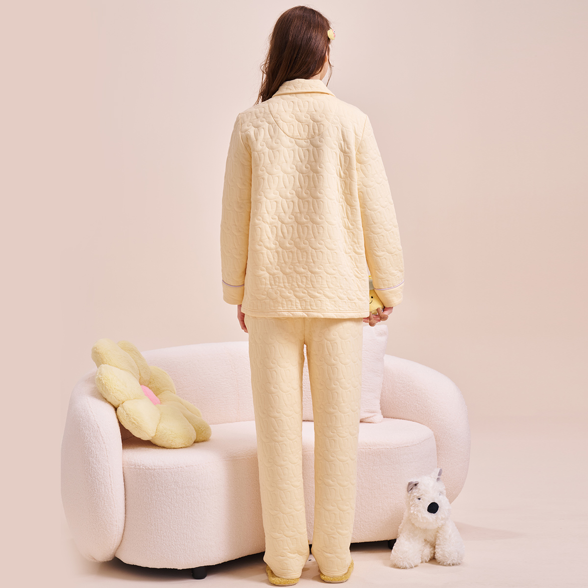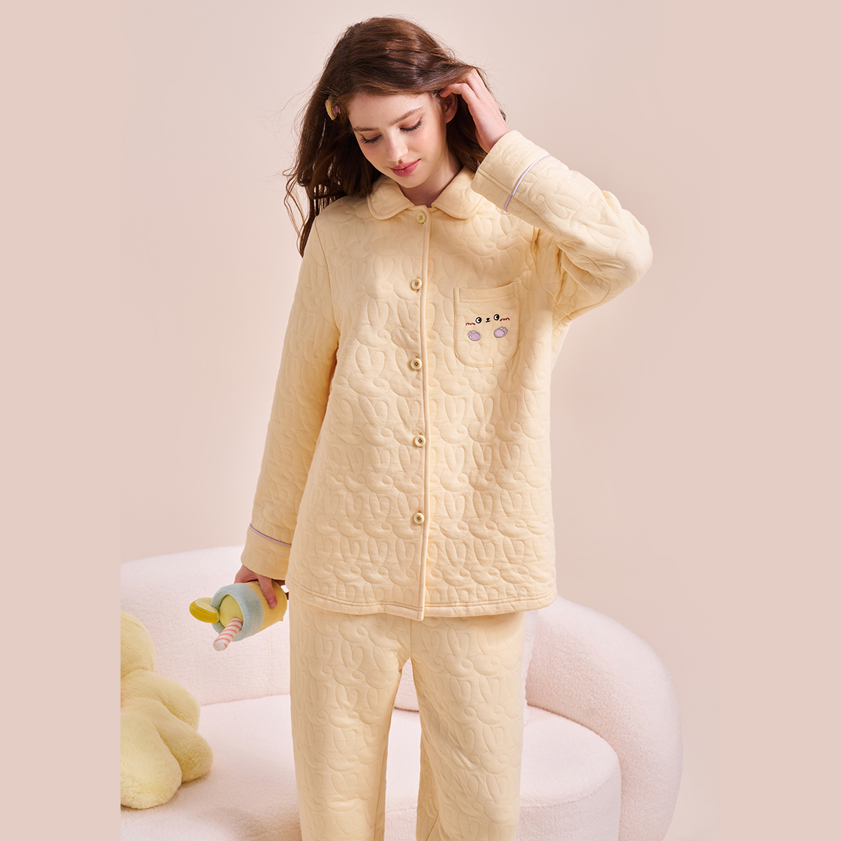 法兰绒家居服套装 睡衣女秋冬季 三层加厚珊瑚绒夹棉袄加绒保暖新款