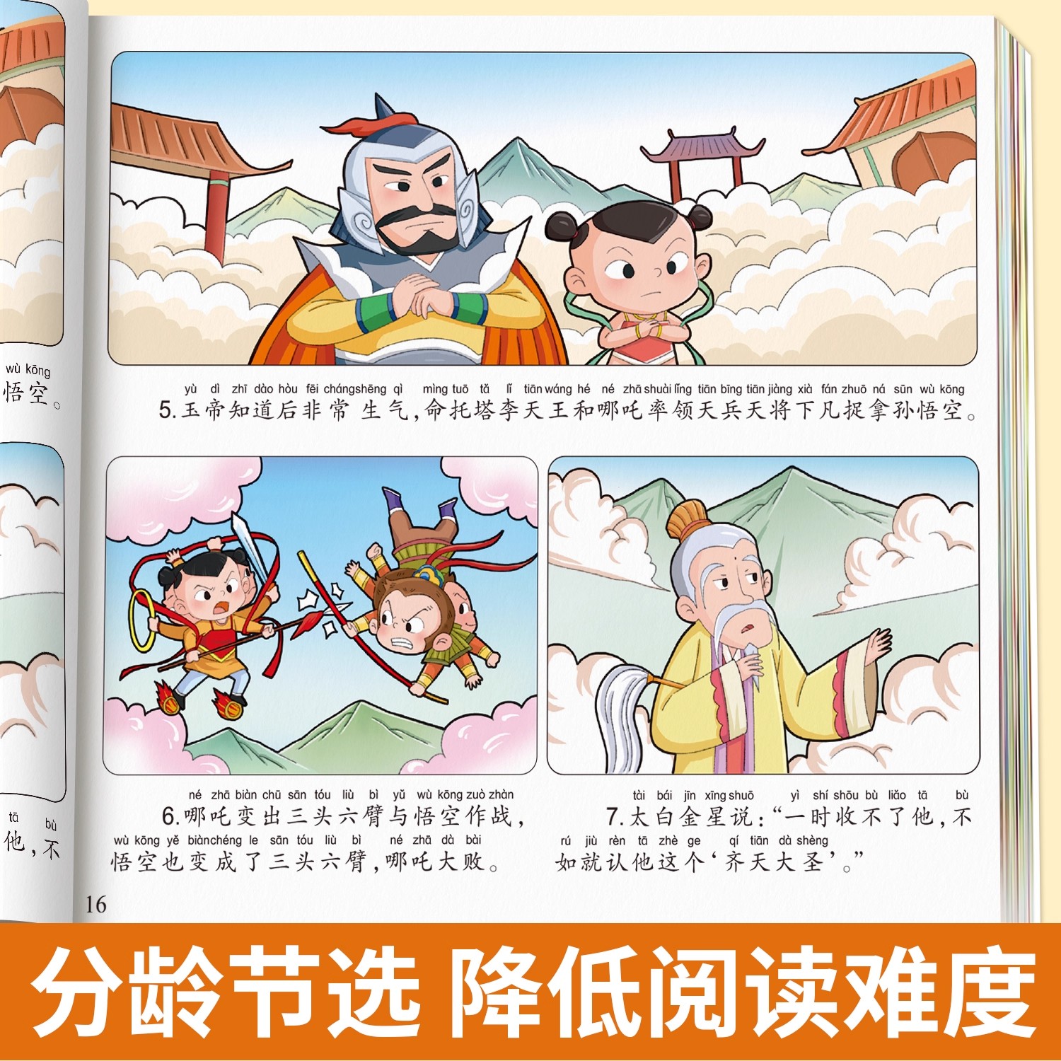 四大名著连环画西游记儿童绘本漫画版 阅读 小学生全套4册彩图注音三国演义水浒传红楼梦小人书一二三年级课外阅读书籍幼小衔接经典