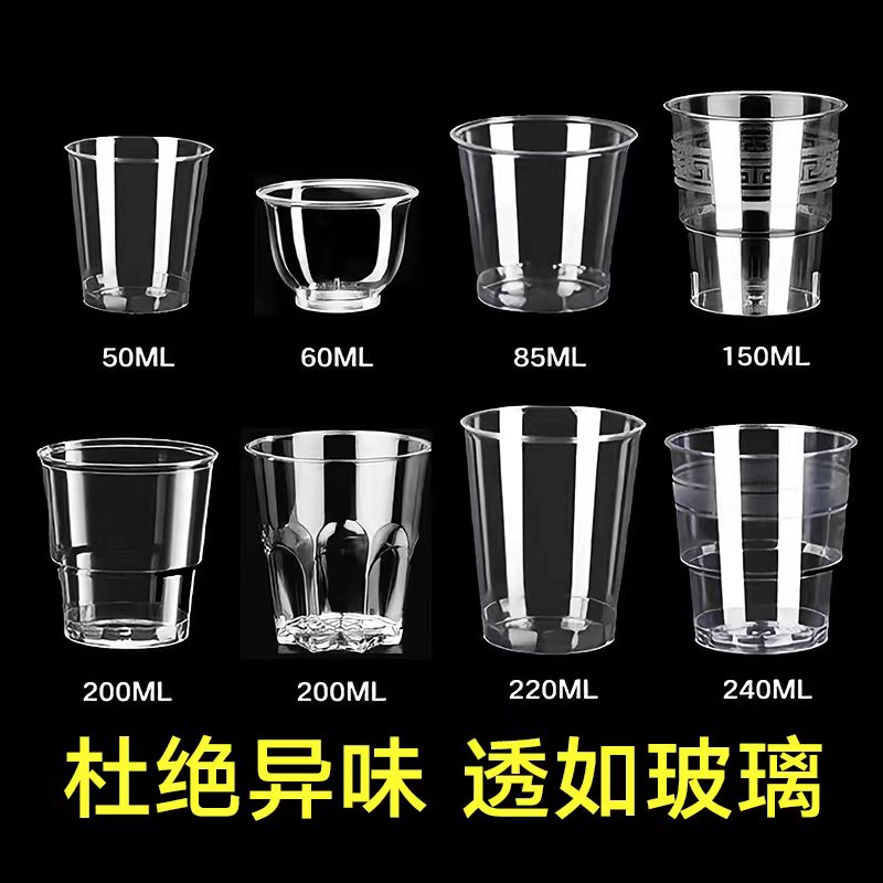 一次性杯子透明塑料杯加厚加大号家用防烫航空杯商用饮茶水杯防摔