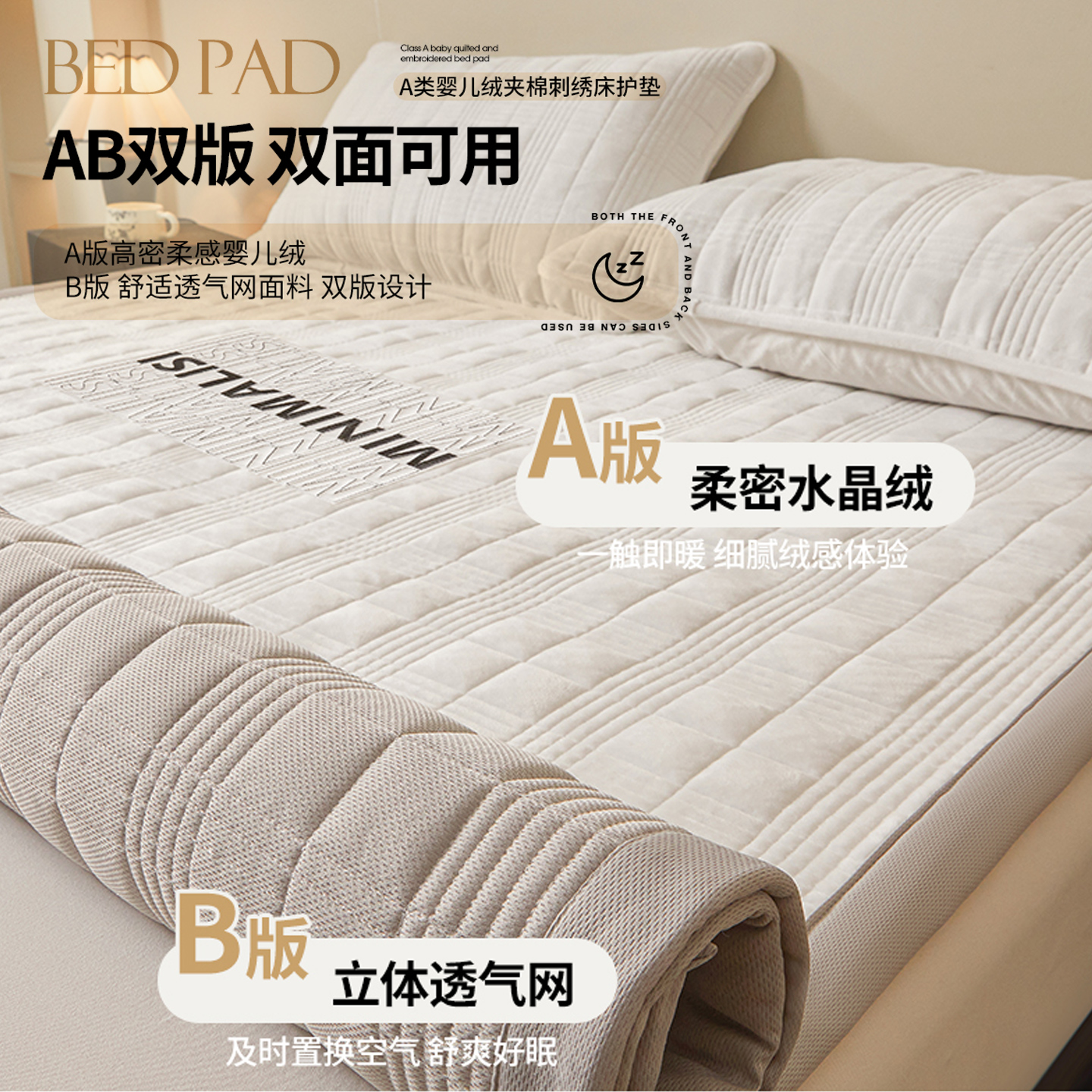 A类婴儿绒夹棉床护垫单件家用软垫榻榻米防滑床单宿舍单人床褥垫
