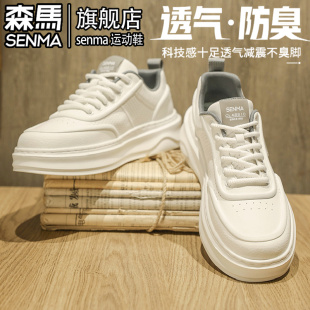 低帮百搭软底增高小白潮鞋 森马男鞋 运动休闲白色板鞋 2025新款 秋季
