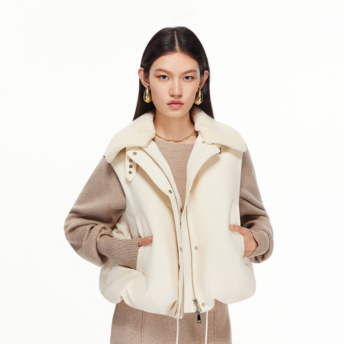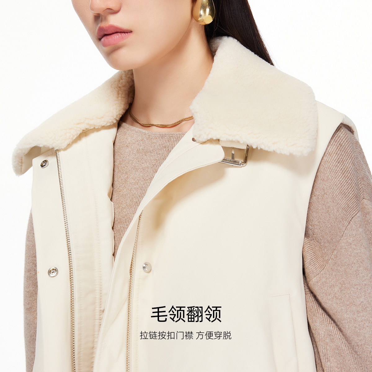 90白鸭绒毛领宽松无袖 10.11上新Vero Moda羽绒服女2025秋冬新款