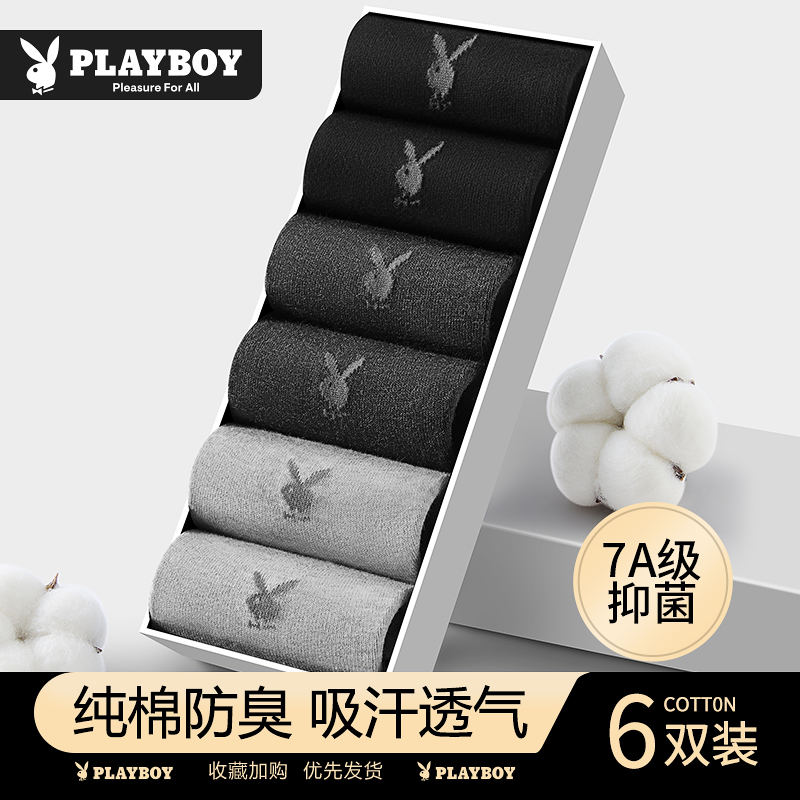 7A抗菌透气吸汗全棉新商务袜 男款 花花公子袜子男士 纯棉中筒袜秋季