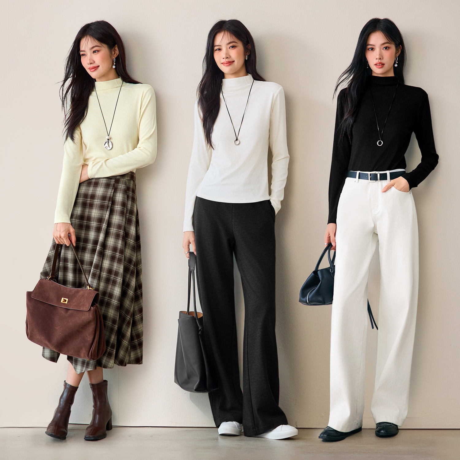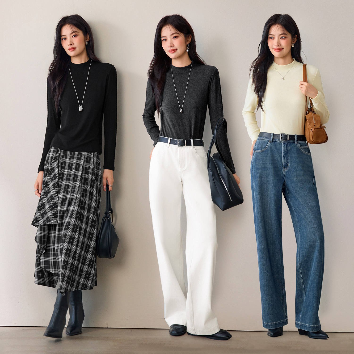 小个子圆领内搭打底衫 春秋冬薄款 显瘦短款 收腰t恤女长袖 上衣 修身