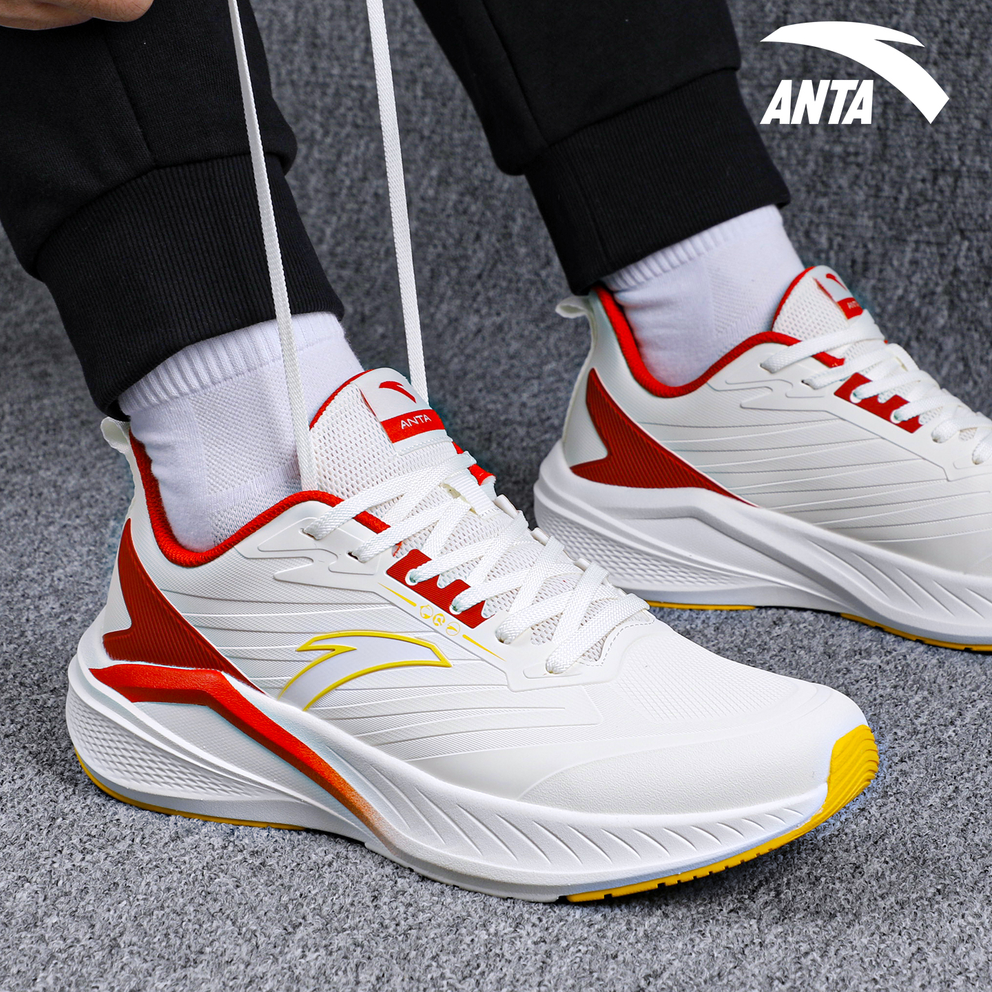 皮面防泼水红色运动鞋 安踏男鞋 2025新款 秋季 子 云骥男子减震跑步鞋