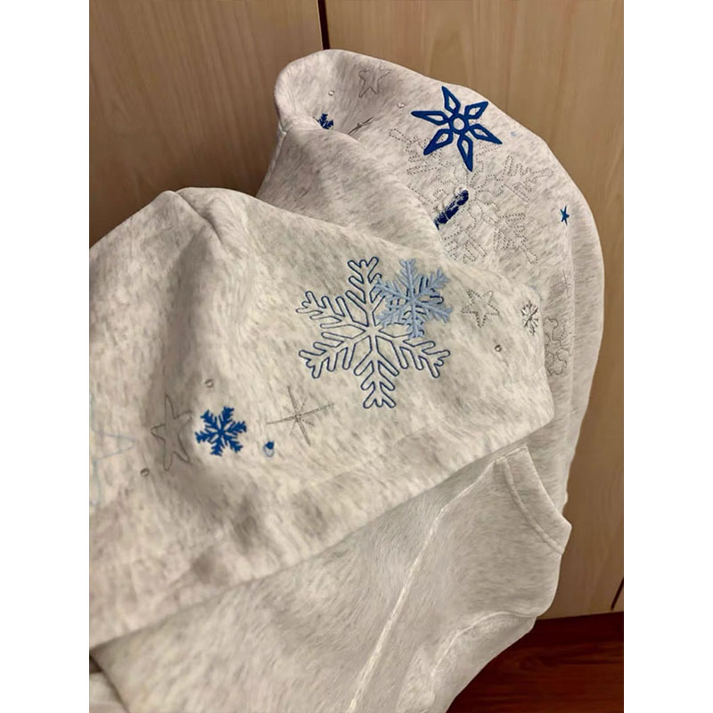 lhak美式 雪花刺绣连帽卫衣男秋冬设计感小众慵懒风上衣外套潮ins