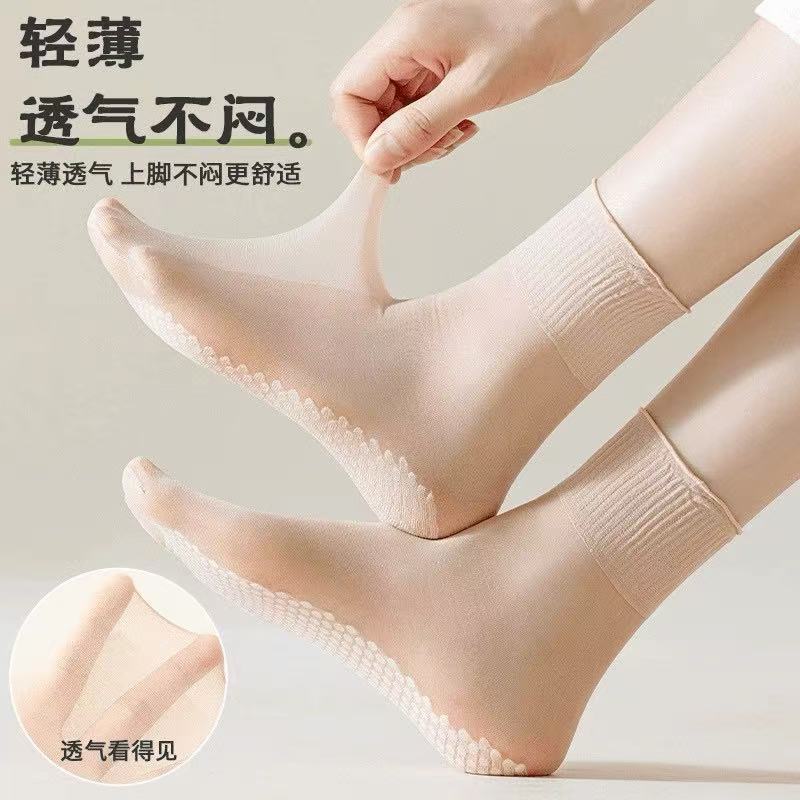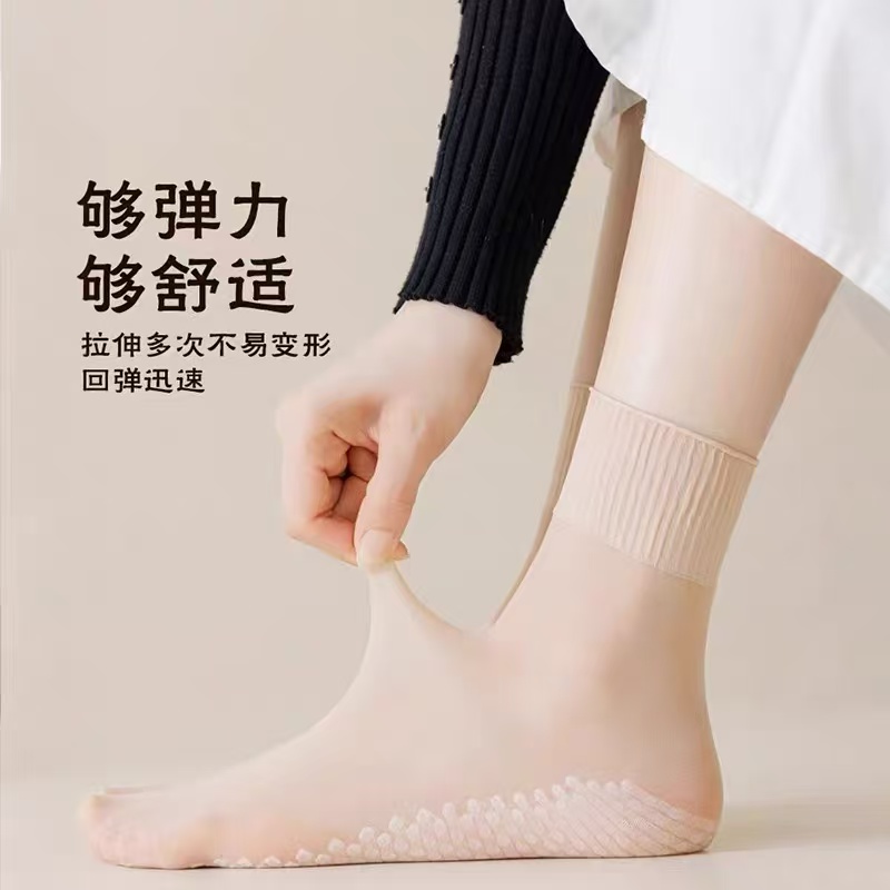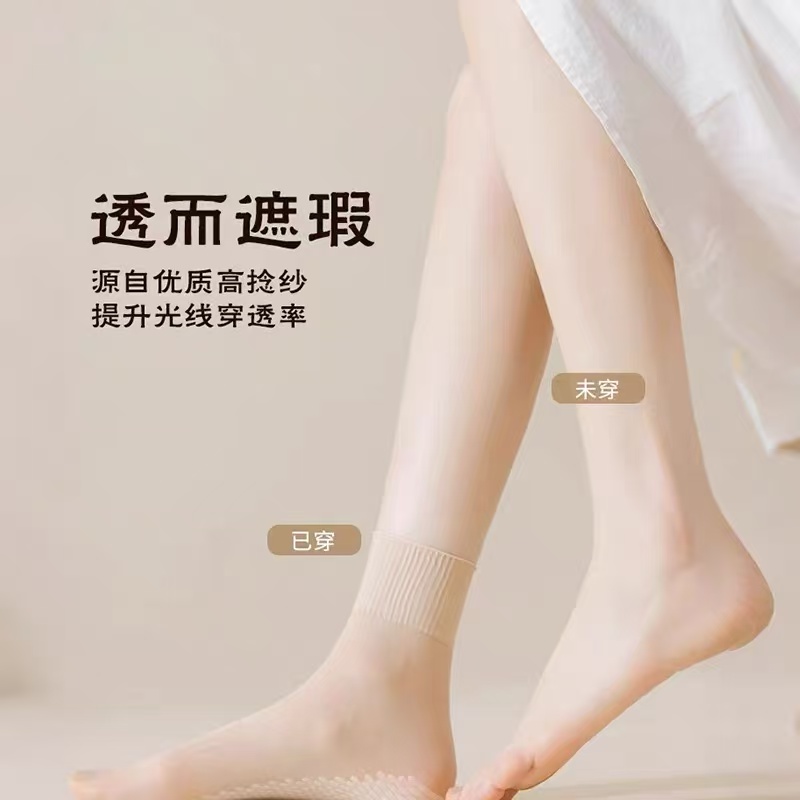 浪莎丝袜女短春秋短款 防勾袜子短丝袜 水晶丝耐磨中筒黑色肉色夏季