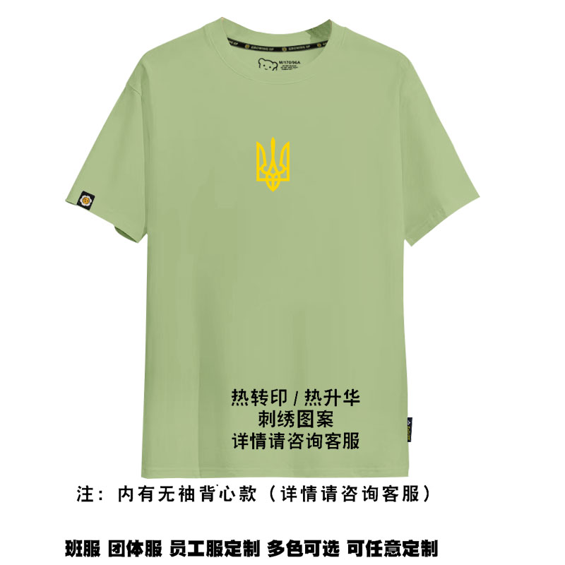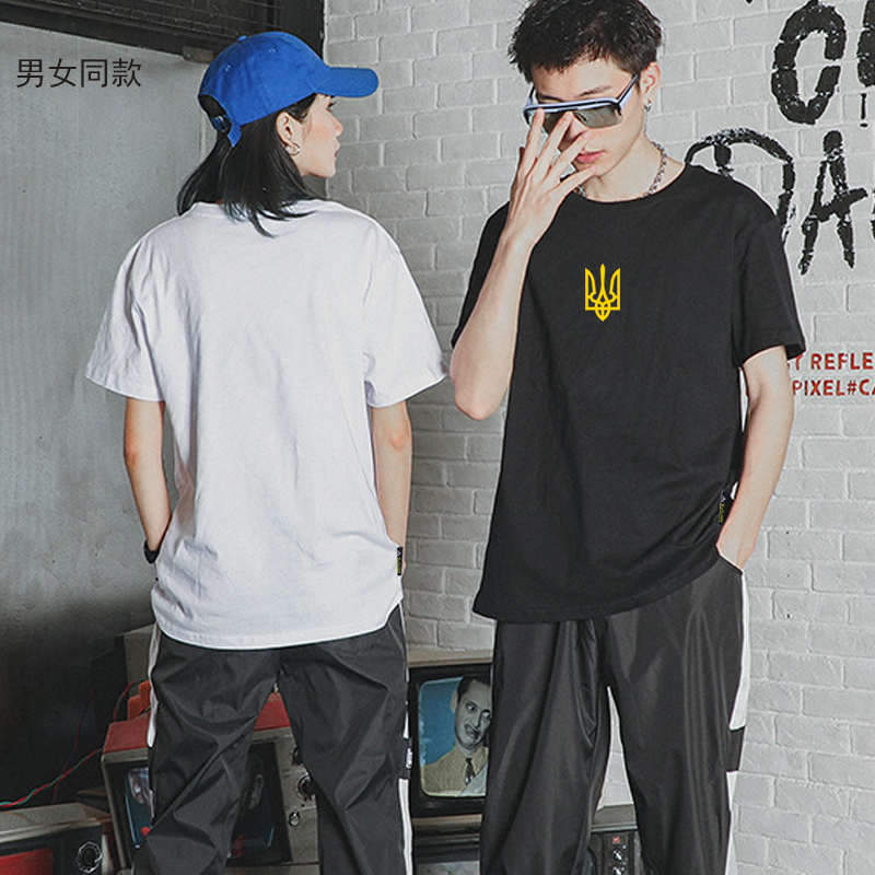 男女纯棉半袖 t恤衫 乌克兰国家标志Ukraine三叉戟国家队短袖 刺绣款