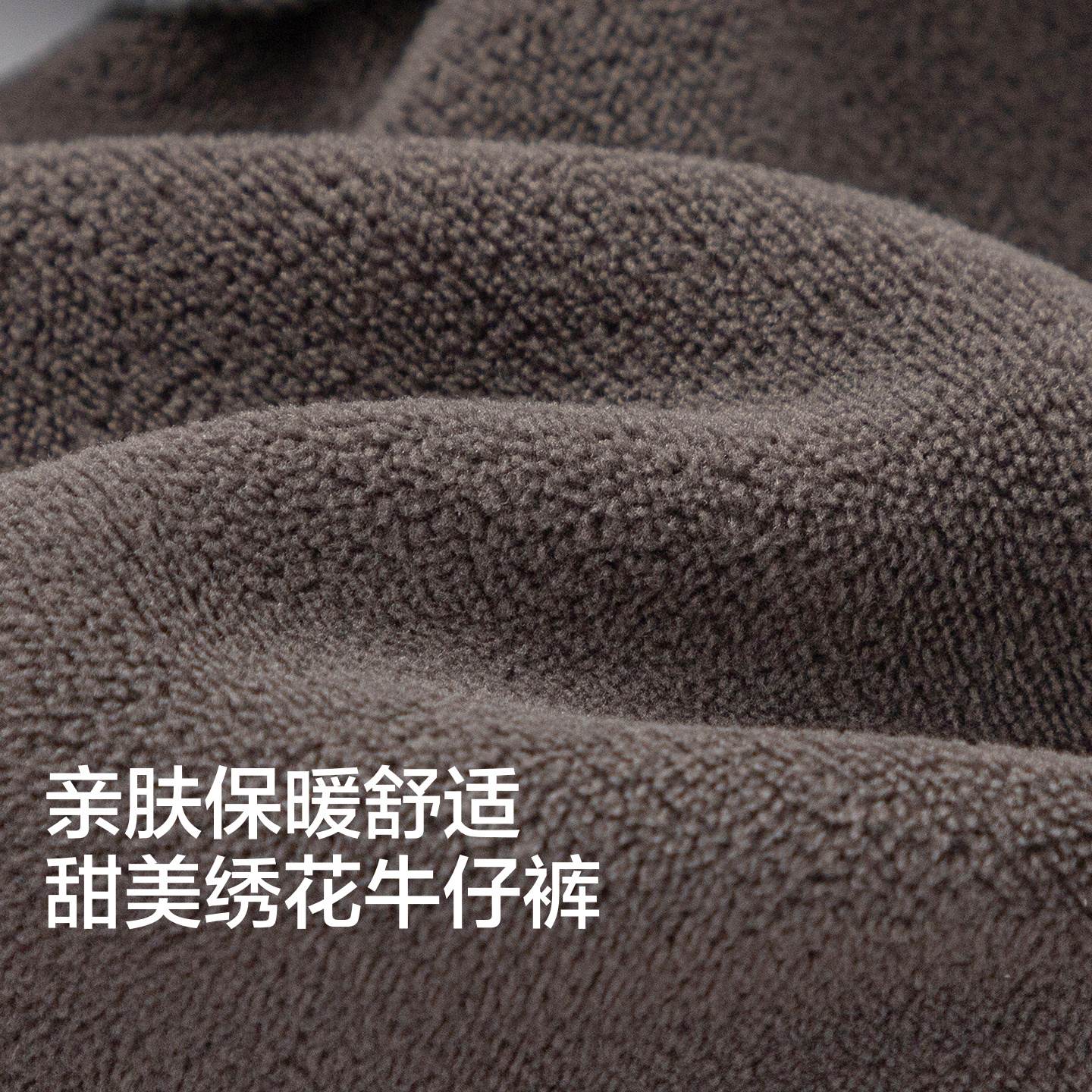 休闲直筒阔腿裤 自然涩小狗刺绣牛仔裤 加绒美式 2025新款 子 女秋冬季