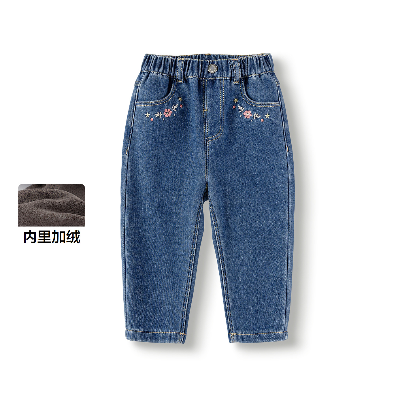 中大童弹力裤 冬加绒儿童一体绒长裤 子 25春新款 女童牛仔喇叭裤