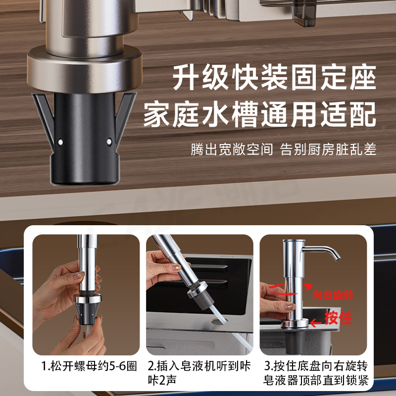 厨房洗洁精水槽按压器太空铝快装 皂液器家用洗碗槽洗涤剂灵压取器