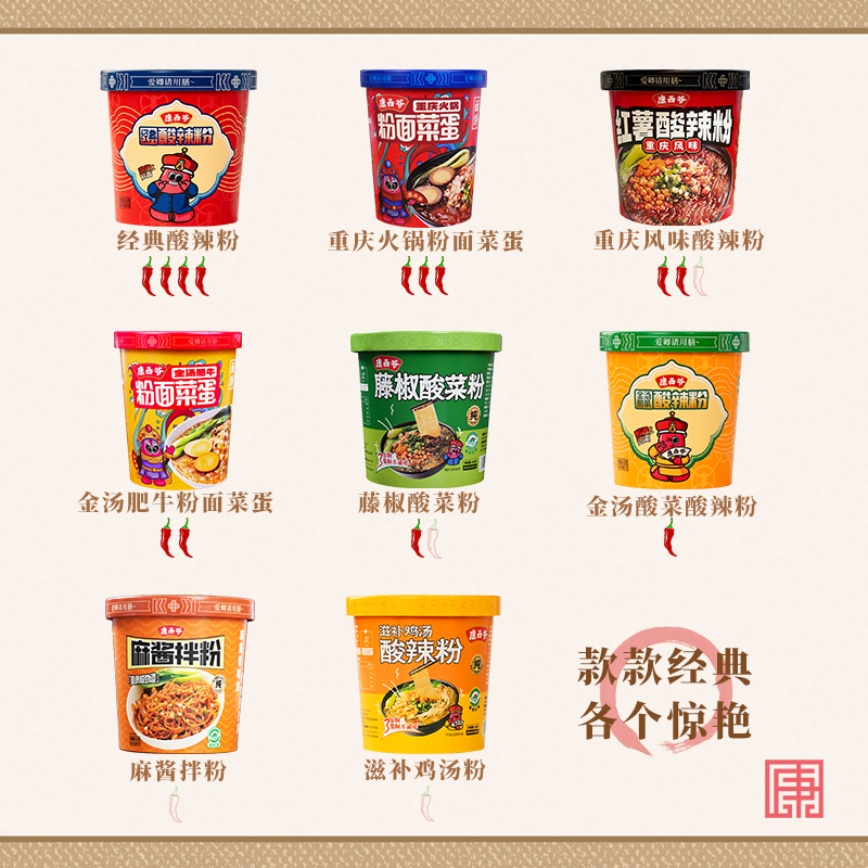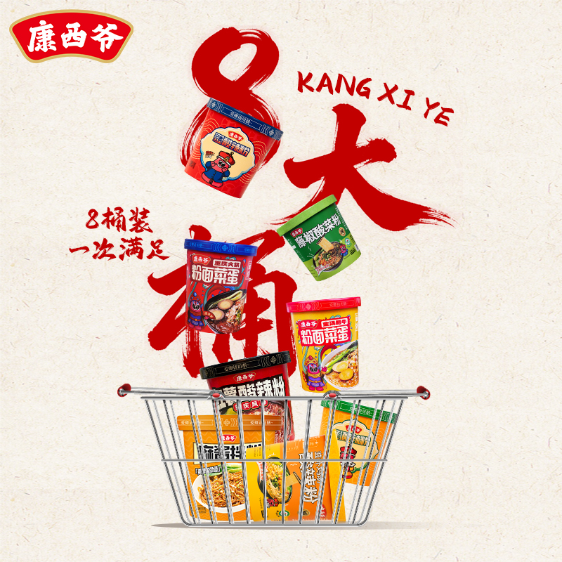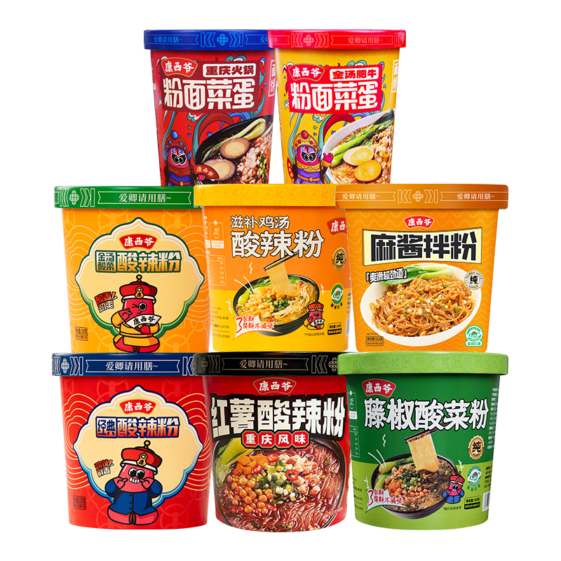 康西爷酸辣粉面菜蛋方便速食免煮冲泡混合夜宵宿舍桶装 整箱8桶装