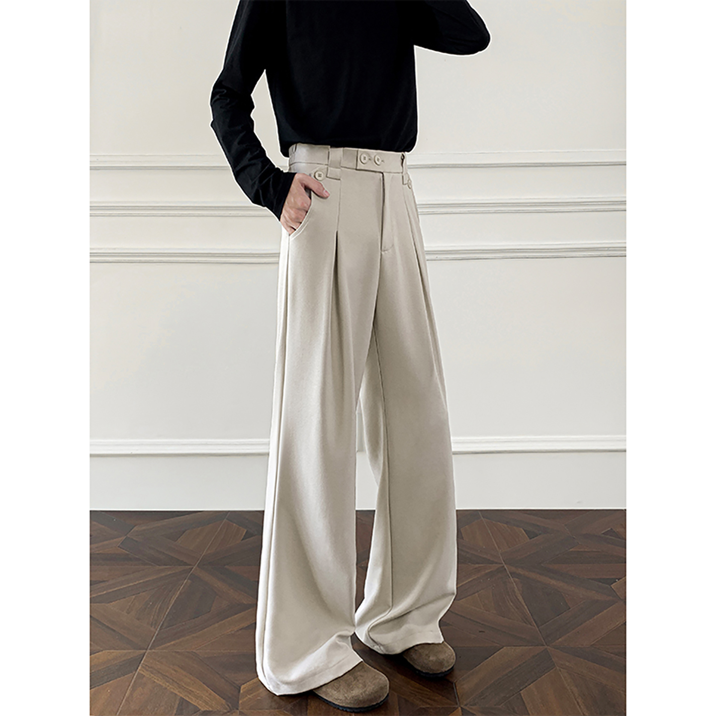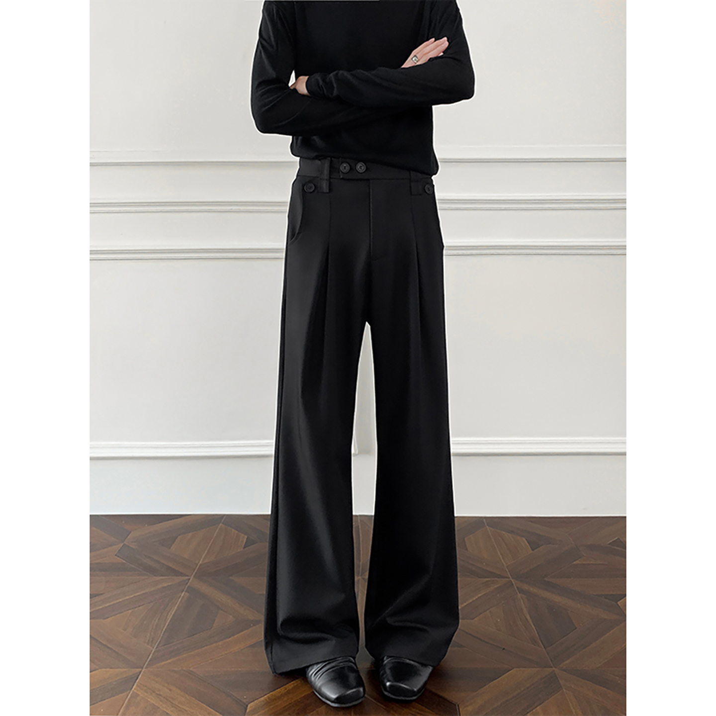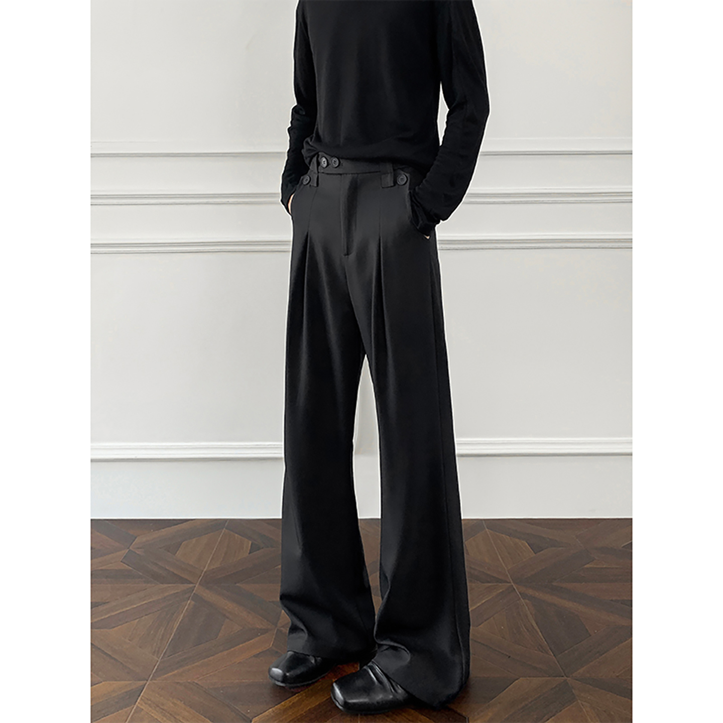 子直筒宽松长裤 那不勒斯高腰排扣微喇西裤 型裤 垂坠感A字版 男秋季