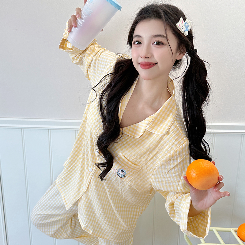带胸垫简约显瘦显白甜美ins风可外穿 睡衣套装 日系风新款 开衫