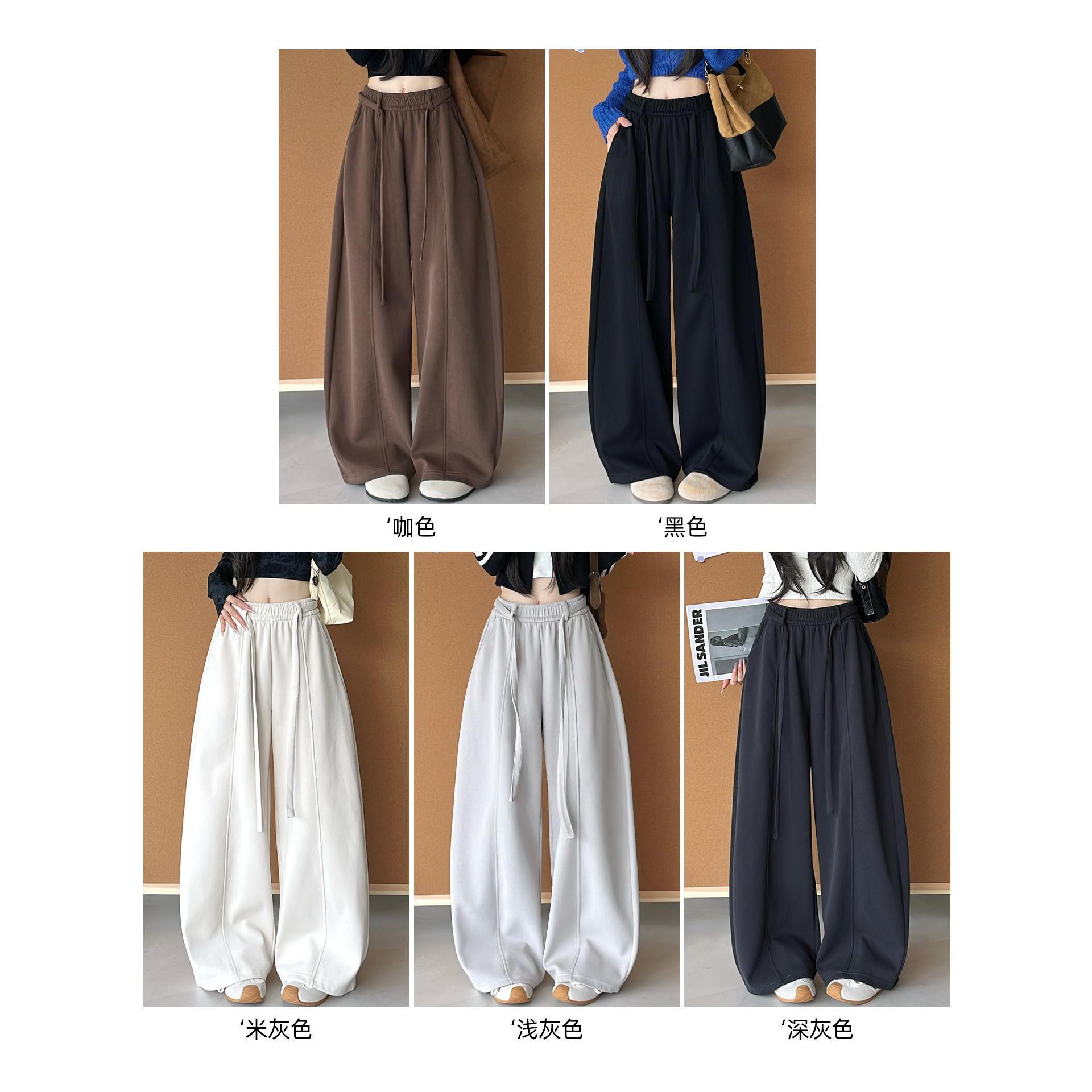 高级宽松bf慵懒垂感直筒加绒休闲阔腿裤 2025新款 子女春秋季 糯米裤