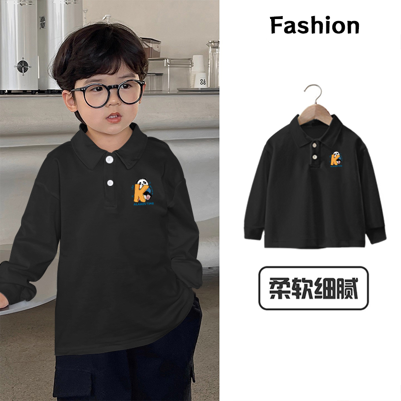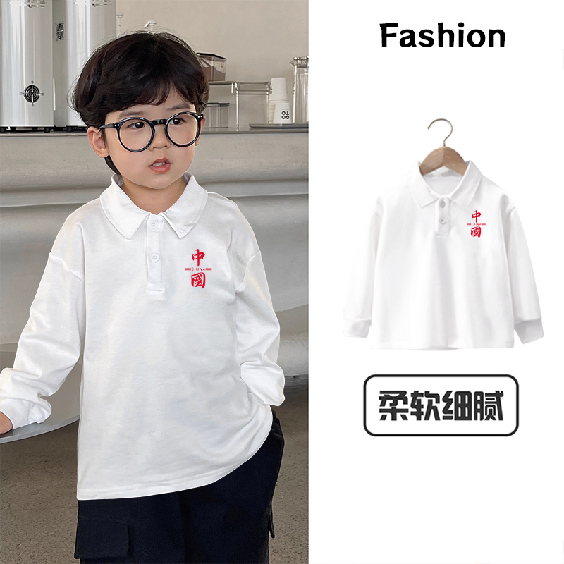 上衣潮t 翻领打底t恤男女童索罗娜长袖 儿童春秋纯色polo衫 2025新款