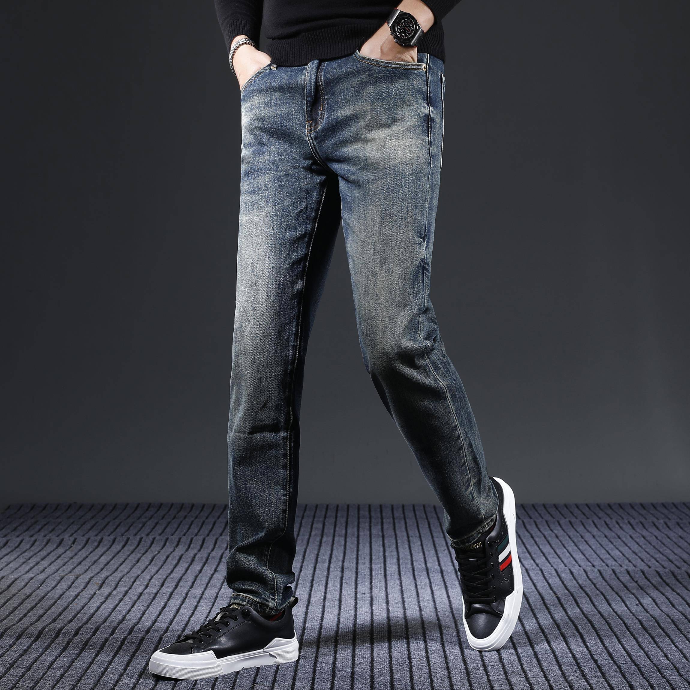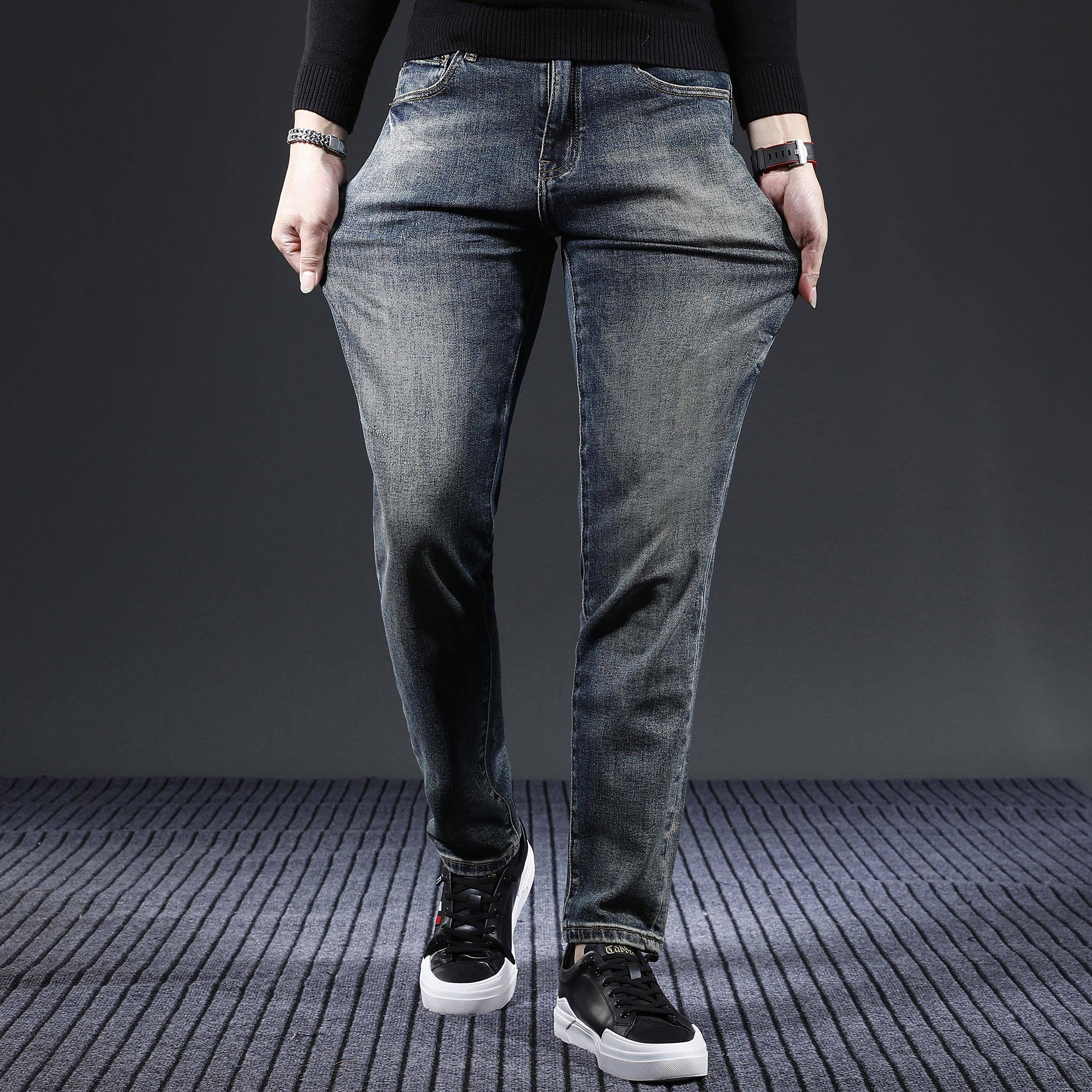 直筒休闲弹力潮流裤 秋冬季 修身 男高端男士 子男1014h 牛仔裤