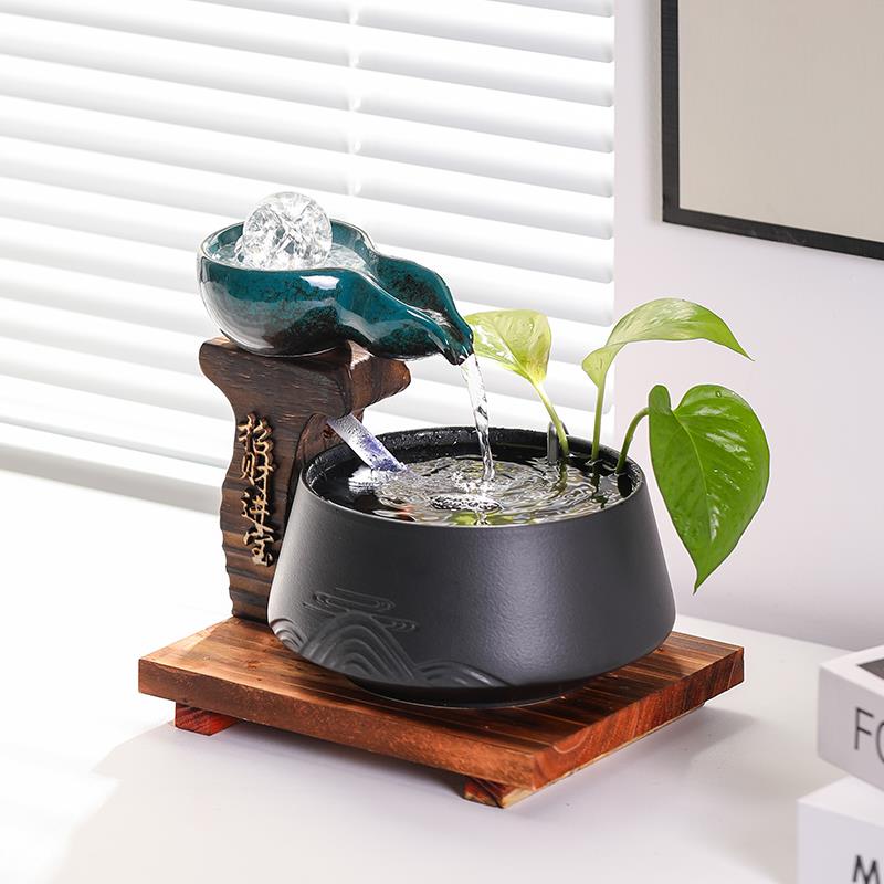 创意招财风水轮流水摆件循环水新中式 饰礼品 办公室前台茶室桌面装