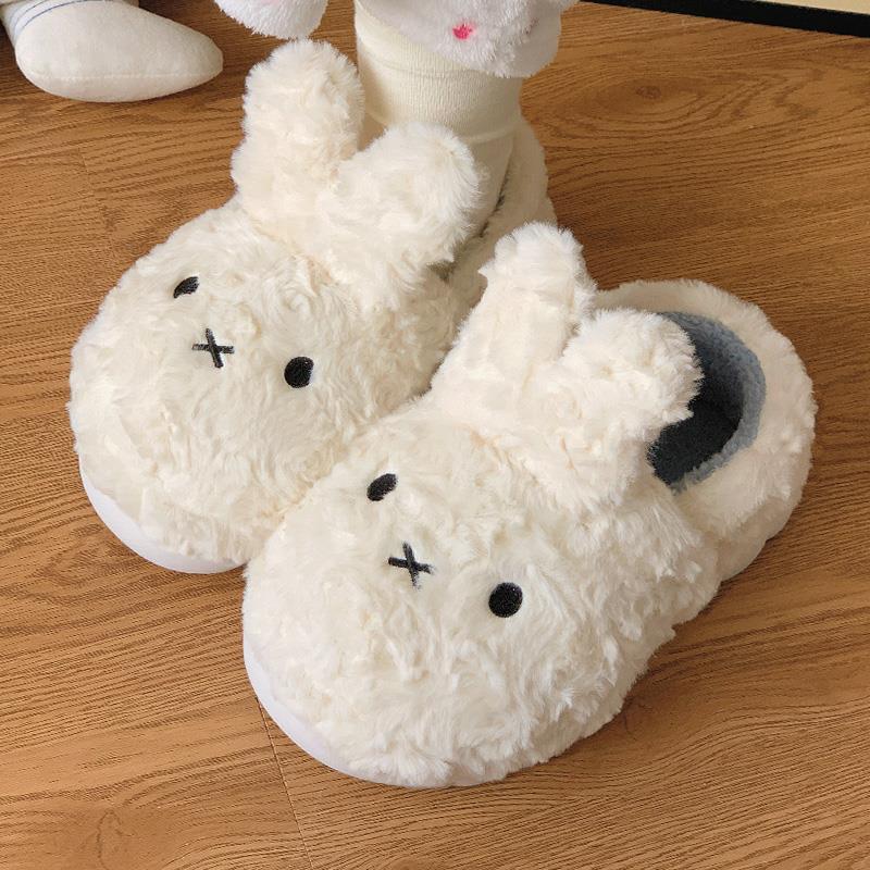 假日 外穿防滑厚底居家保暖棉鞋 可爱米菲兔包跟加绒棉拖鞋 女秋冬季