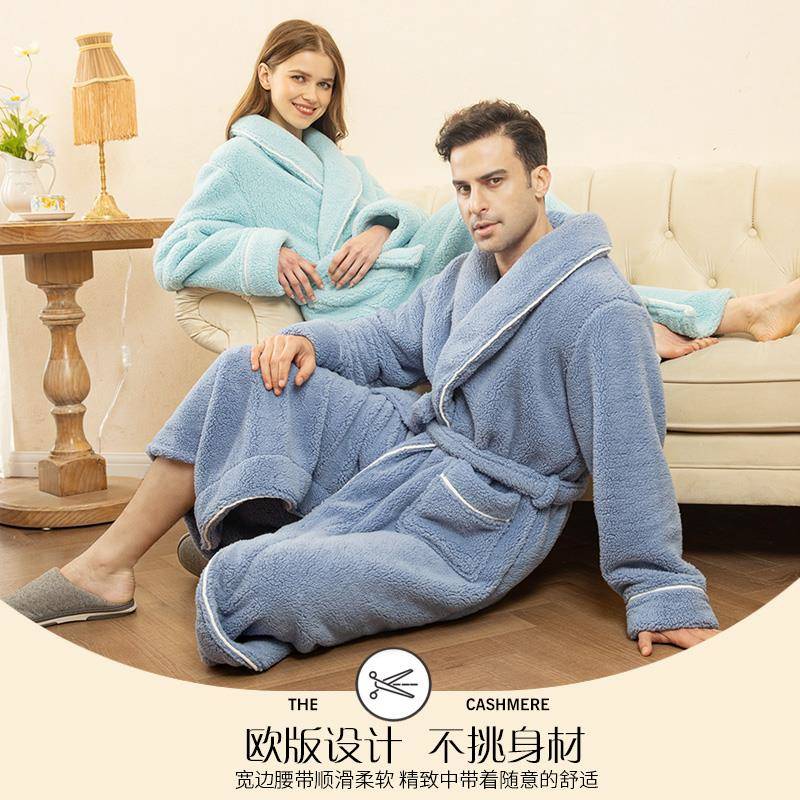 秋冬双面绒加厚睡袍冬天2025年新款 舒棉1009c 秋冬男女情侣加长款
