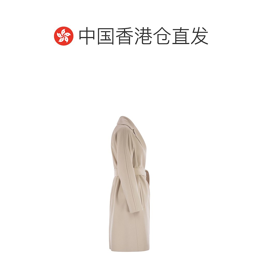 太平鸟大师甄绒系列西西里浴袍羊绒大衣女双面毛呢款 白色赫本风